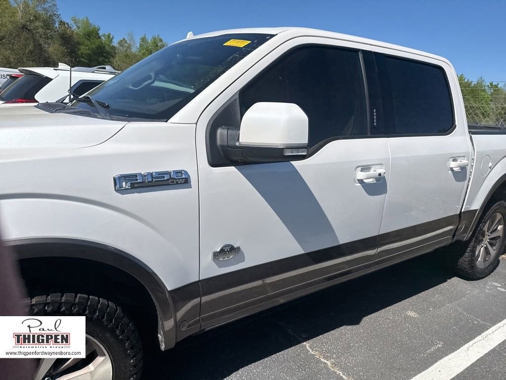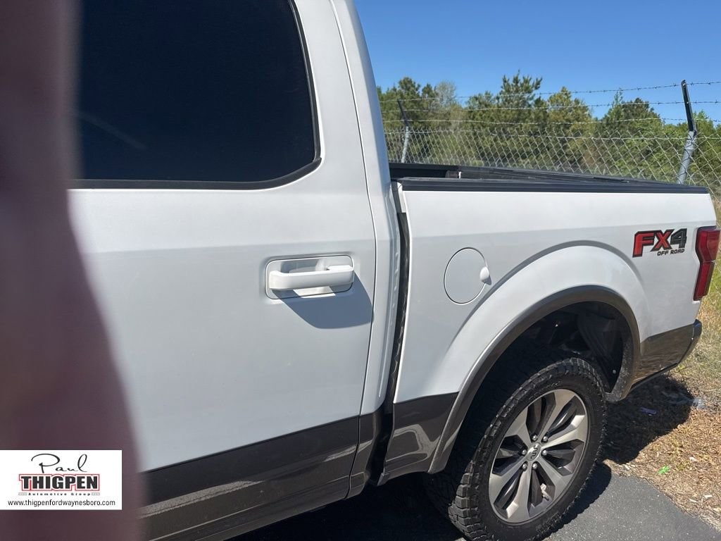 Certified. White Platinum 2019 Ford F-150 King Ranch 4WD 10-Speed Automatic 3.5L V6 EcoBoost Ford Blue Certification Certified, 4WD, 10 Speakers, 18" Machined-Aluminum Wheels, 20" Machined-Aluminum Wheels, 4-Wheel Disc Brakes, 4x4 FX4 Off-Road Bodyside Decal, ABS brakes, Active Park Assist, Adaptive Cruise Control, Adjustable pedals, Air Conditioning, Alloy wheels, AM/FM radio: SiriusXM, AppLink/Apple CarPlay and Android Auto, Auto High-beam Headlights, Auto tilt-away steering wheel, Auto-dimming door mirrors, Auto-dimming Rear-View mirror, Automatic temperature control, BLIS Blind Spot Information System, Brake assist, Class IV Trailer Hitch Receiver, Compass, Delay-off headlights, Driver door bin, Driver vanity mirror, Dual front impact airbags, Dual front side impact airbags, Electronic Stability Control, Emergency communication system: SYNC 3 911 Assist, Engine Oil Cooler, Equipment Group 601A Luxury, Extended Range 36 Gallon Fuel Tank, Exterior Parking Camera Rear, Front anti-roll bar, Front Bucket Seats, Front Center Armrest, Front dual zone A/C, Front fog lights, Front License Plate Bracket, Front reading lights, Front wheel independent suspension, Fully automatic headlights, FX4 Off-Road Package, Garage door transmitter, Genuine wood dashboard insert, Genuine wood door panel insert, GVWR: 7,050 lbs Payload Package, Heated door mirrors, Heated front seats, Heated rear seats, Heated steering wheel, Hill Descent Control, Illuminated entry, Inflatable Rear Safety Belts, Integrated Trailer Brake Controller, King Ranch Leather Bucket Seats, Lane-Keeping System, LED Sideview Mirror Spotlights, Low tire pressure warning, Max Trailer Tow Package, Memory seat, Multi-Contour Driver & Passenger Seats, Navigation System, Occupant sensing airbag, Off-Road Tuned Front Shock Absorbers, Outside temperature display, Overhead airbag, Overhead console, Panic alarm, Passenger door bin, Passenger vanity mirror, Pedal memory, Power door mirrors, Power driver seat, Power passenger seat, Power steering, Power windows, Power-Deployable Running Boards, Pro Trailer Backup Assist, Radio data system, Radio: B&O Sound System by Bang & Olufsen, Rain sensing wipers, Rear Parking Sensors, Rear reading lights, Rear seat center armrest, Rear step bumper, Rear window defroster, Remote keyless entry, Security system, SiriusXM Radio, Speed control, Speed-sensing steering, Split folding rear seat, Steering wheel memory, Steering wheel mounted audio controls, SYNC 3, Tachometer, Tailgate Step w/Tailgate Lift Assist, Technology Package, Telescoping steering wheel, Tilt steering wheel, Traction control, Tray Style Floor Liner, Trip computer, Turn signal indicator mirrors, Twin Panel Moonroof, Upgraded Front Stabilizer Bar, Variably intermittent wipers, Ventilated front seats, Voice-Activated Touchscreen Navigation, Voltmeter, 4WD.