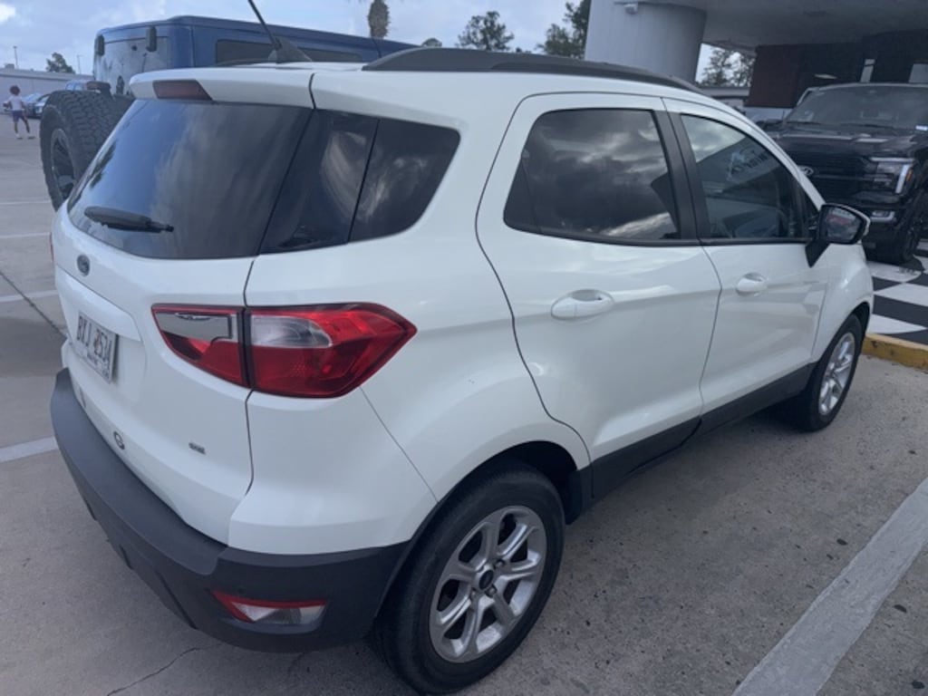 Diamond White 2021 Ford EcoSport SE FWD EcoBoost 1.0L I3 GTDi DOHC Turbocharged VCT **LOCAL TRADE**, 4G WiFi Hotspot Telematics, 8" Color Touchscreen, Backup Camera, Hill Start Assist, Parking Sensors, Power Mirror Package, Power Package, Push Button Start, Reverse Brake Assist, Reverse Sensing, SE Package, Sunroof/Moonroof, 4D Sport Utility, EcoBoost 1.0L I3 GTDi DOHC Turbocharged VCT, 6-Speed Automatic, FWD, 110V/150W AC Power Outlet, 4-Wheel Disc Brakes, 7 Speakers, ABS brakes, AM/FM radio: SiriusXM, Ambient Lighting, AppLink/Apple CarPlay and Android Auto, Automatic temperature control, BLIS Blind Spot Information System, Brake assist, Compass, Electronic Stability Control, Emergency communication system: SYNC 3 911 Assist, Equipment Group 200A, Exterior Parking Camera Rear, Front Center Armrest, Front wheel independent suspension, Heated front seats, Hood/Side/Tailgate Overlander Decal, Illuminated entry, Leather Shift Knob, Low tire pressure warning, Navigation System, Outside temperature display, Overhead console, Power door mirrors, Power moonroof, Power steering, Power windows, Radio data system, Rear Parking Sensors, Rear seat center armrest, Rear window wiper, Remote keyless entry, Roof rack: rails only, SE Convenience Package, SiriusXM Radio, SiriusXM Traffic & Travel Link, Speed-sensing steering, Split folding rear seat, Steering wheel mounted audio controls, SYNC 3 Communications & Entertainment System, SYNC 3 Communications & Entertainment System w/47B, Telescoping steering wheel, Tilt steering wheel, Traction control, Trip computer, Turn signal indicator mirrors, Unique Cloth Heated Front Bucket Seats, Wheels: 16" Shadow Silver-Painted Aluminum.