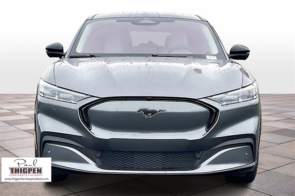 Certified. Gray Metallic 2021 Ford Mustang Mach-E Premium AWD Single-Speed Automatic Dual Electric Motor Aluminum Wheels, Ford Blue Certification Certified, 10 Speakers, 4-Wheel Disc Brakes, ABS brakes, Air Conditioning, Alloy wheels, AM/FM radio: SiriusXM, AM/FM Stereo, Apple CarPlay/Android Auto, Auto High-beam Headlights, Auto-dimming Rear-View mirror, Automatic temperature control, Axle Ratio: 9.05, Brake assist, Bumpers: body-color, Cargo Area Protector, Compass, Delay-off headlights, Driver door bin, Driver vanity mirror, Dual front impact airbags, Dual front side impact airbags, Electronic Stability Control, Emergency communication system: 911 Assist, Equipment Group 300A, Exterior Parking Camera Rear, Four wheel independent suspension, Front & Rear Floor Liners, Front anti-roll bar, Front Bucket Seats, Front Center Armrest, Front dual zone A/C, Front reading lights, Fully automatic headlights, Garage door transmitter, Heated door mirrors, Heated front seats, Heated Perforated ActiveX Bucket Seats, Heated steering wheel, Illuminated entry, Interior Protection Package (Pre-Installed), Knee airbag, Low tire pressure warning, Memory seat, Navigation system: Connected Navigation, Occupant sensing airbag, Outside temperature display, Overhead airbag, Overhead console, Panic alarm, Passenger door bin, Passenger vanity mirror, Power door mirrors, Power driver seat, Power Liftgate, Power passenger seat, Power steering, Power windows, Radio data system, Rain sensing wipers, Rear anti-roll bar, Rear seat center armrest, Rear side impact airbag, Rear window defroster, Rear window wiper, Remote keyless entry, Security system, SiriusXM Radio w/360L, Speed control, Speed-sensing steering, Speed-Sensitive Wipers, Split folding rear seat, Spoiler, Steering wheel mounted audio controls, SYNC 4A w/Enhanced Voice Recognition, Telescoping steering wheel, Tilt steering wheel, Traction control, Trip computer, Turn signal indicator mirrors, Variably intermittent wipers, Wheels: 19" Machined-Face Aluminum.