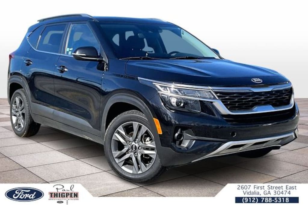 Vidalia Ford Lincoln 2607 E 1st St Vidalia, Georgia 30474 912-788-5318 Ford Blue Advantage: Blue Certified Certified, 4-Wheel Disc Brakes, 6 Speakers, 6.052 Axle Ratio, ABS brakes, Air Conditioning, Alloy wheels, AM/FM radio, Apple CarPlay & Android Auto, Brake assist, Bumpers: body-color, Combination Sofino & Cloth Seat Trim, Delay-off headlights, Driver door bin, Driver vanity mirror, Dual front impact airbags, Dual front side impact airbags, Electronic Stability Control, Exterior Parking Camera Rear, Front anti-roll bar, Front Bucket Seats, Front Center Armrest, Front fog lights, Front reading lights, Front wheel independent suspension, Fully automatic headlights, Heated door mirrors, Illuminated entry, Leather Shift Knob, Low tire pressure warning, Occupant sensing airbag, Outside temperature display, Overhead airbag, Overhead console, Panic alarm, Passenger door bin, Passenger vanity mirror, Power door mirrors, Power steering, Power windows, Radio: AM/FM/MP3 Display Audio, Rear seat center armrest, Rear window defroster, Rear window wiper, Remote keyless entry, Security system, Speed control, Speed-sensing steering, Split folding rear seat, Spoiler, Steering wheel mounted audio controls, Tachometer, Telescoping steering wheel, Tilt steering wheel, Traction control, Trip computer, Turn signal indicator mirrors, Variably intermittent wipers, and Wheels: 17" Alloy w/Dark Gray Finish. Cherry Black 2021 Kia Seltos S FWD 2.0L I4 MPI 4-Wheel Disc Brakes, 6 Speakers, 6.052 Axle Ratio, ABS brakes, Air Conditioning, Alloy wheels, AM/FM radio, Apple CarPlay & Android Auto, Brake assist, Bumpers: body-color, Combination Sofino & Cloth Seat Trim, Delay-off headlights, Driver door bin, Driver vanity mirror, Dual front impact airbags, Dual front side impact airbags, Electronic Stability Control, Exterior Parking Camera Rear, Front anti-roll bar, Front Bucket Seats, Front Center Armrest, Front fog lights, Front reading lights, Front wheel independent suspension, Fully automatic headlights, Heated door mirrors, Illuminated entry, Leather Shift Knob, Low tire pressure warning, Occupant sensing airbag, Outside temperature display, Overhead airbag, Overhead console, Panic alarm, Passenger door bin, Passenger vanity mirror, Power door mirrors, Power steering, Power windows, Radio: AM/FM/MP3 Display Audio, Rear seat center armrest, Rear window defroster, Rear window wiper, Remote keyless entry, Security system, Speed control, Speed-sensing steering, Split folding rear seat, Spoiler, Steering wheel mounted audio controls, Tachometer, Telescoping steering wheel, Tilt steering wheel, Traction control, Trip computer, Turn signal indicator mirrors, Variably intermittent wipers, Wheels: 17" Alloy w/Dark Gray Finish.