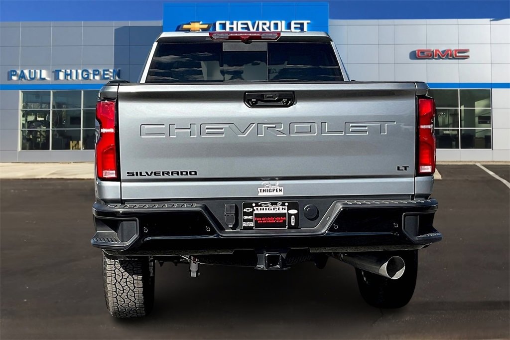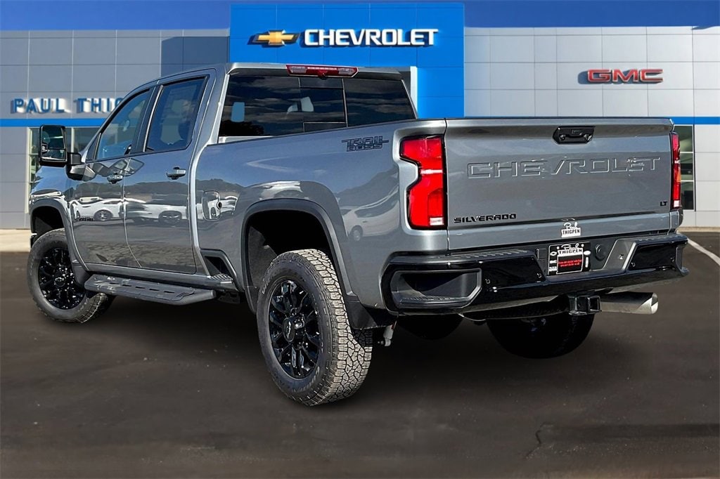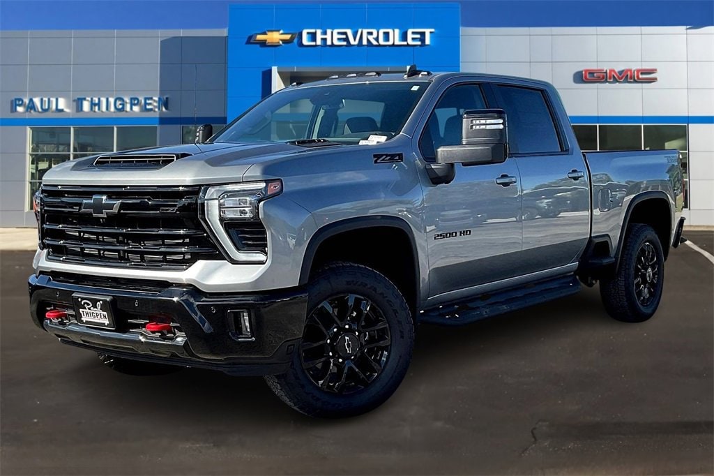 Sterling Gray Metallic 2025 Chevrolet Silverado 2500HD LT Duramax 6.6L V8 Turbodiesel 4WD Cloth Rear Seat w/Storage Package, Convenience Package (10-Way Power Driver Seat Adjuster w/Lumbar, Dual-Zone Automatic Climate Control, Front LED Fog Lamps, LED Cargo Area Lighting, and Manual Tilt & Telescoping Steering Column), Convenience Package II (Hitch Guidance w/Hitch View, In-Vehicle Trailering App System, Power Sliding Rear Window w/Defogger, and Universal Home Remote), Gooseneck/5th Wheel Prep Package (Black Chevytec Spray-On Bedliner), Heat Package (Heated Driver & Front Outboard Passenger Seating and Heated Steering Wheel), Leather Package, Max Trailering Package, Preferred Equipment Group 1LT (120-Volt Bed Mounted Power Outlet, 120-Volt Interior Power Outlet, 170 Amp Alternator, 2-Speed Electronic Shift Transfer Case, 4-Way Manual Driver Seat Adjuster, Black Mirror Caps, Bluetooth® For Phone, Chevrolet Connected Access Capable, Color-Keyed Carpeting Floor Covering, Compass, Deep-Tinted Glass, Electronic Cruise Control w/Set & Resume Speed, EZ Lift Power Lock & Release Tailgate, Front Rubberized Vinyl Floor Mats, Halogen Reflector Headlamps, HD Rear Vision Camera, Heated Vertical Trailering Mirrors, Keyless Open & Start, OnStar Services Capable, Power Door Locks, Power Front Windows w/Driver Express Up/Down, Power Front Windows w/Passenger Express Down, Power Rear Windows w/Express Down, Push Button Start, Rear 60/40 Folding Bench Seat (Folds Up), Rear Rubberized Vinyl Floor Mats, SiriusXM w/360L Trial Subscription, Standard Tailgate, Steering Wheel Audio Controls, Wi-Fi Hotspot Capable, Wireless Phone Projection, and Wrapped Steering Wheel), Remote Start Package (Electric Rear-Window Defogger, Remote Vehicle Starter System, and Unauthorized Entry Theft-Deterrent System), Safety Package (Bed View Camera w/2 Trailer Camera Provisions, HD Surround Vision, Rear Cross Traffic Alert, Trailer Camera Provisions, Trailer Side Blind Zone Alert, and Ultrasonic Front & Rear Park Assist), Suspension Package, Trail Boss Package (Animated LED Projector Headlamps, Auto-Dimming Inside Rear-View Mirror, Black Grille Bar w/Chevy Black Bow Tie, Front Frame-Mounted Red Recovery Hooks, Heated & Auto-Dimming Vertical Trailering Mirrors, High Gloss Black Front Bumper, High Gloss Black Mirror Caps, High Gloss Black Rear Bumper, and Wheels: 20 High Gloss Black Painted), Up-Level Rear Seat w/Storage Package, Z71 Off-Road Package (Hill Descent Control and Off-Road Suspension), 10-Speed Automatic, 4WD, Black Leather, 17 Machined Aluminum Wheels, 2 Charge/Data USB Ports Inside Center Console, 3 Round Black Tubular Off-Road Assist Steps (LPO), 4-Wheel Disc Brakes, 6 Speakers, 6-Speaker Audio System, 720 Cold-Cranking Amps Heavy-Duty Battery, ABS brakes, Adaptive Cruise Control, Air Conditioning, Alloy wheels, AM/FM radio: SiriusXM with 360L, Apple CarPlay/Android Auto, Auto High-beam Headlights, Body-Color Front Bumper, Body-Color Rear Bumper, Brake assist, Bumpers: chrome, Cloth Seat Trim, Delay-off headlights, Driver door bin, Driver vanity mirror, Dual 220-Amp Primary/170-Amp Auxiliary Alternators, Dual front impact airbags, Dual front side impact airbags, Durabed Pickup Bed, Electronic Stability Control, Emergency communication system: OnStar, Engine Block Heater, Exhaust Brake, Floor-Mounted Center Console, Front 40/20/40 Split-Bench Seats w/Lockable Storage, Front anti-roll bar, Front Bucket Seats, Front Center Armrest w/Storage, Front License Plate Kit, Front reading lights, Front wheel independent suspension, Fully automatic headlights, Heated door mirrors, Illuminated entry, LED Smoked Amber Roof Marker Lamps, Low tire pressure warning, Occupant sensing airbag, Outside temperature display, Overhead airbag, Overhead console, Panic alarm, Passenger door bin, Passenger vanity mirror, Power door mirrors, Power steering, Power windows, Premium audio system: Chevrolet Infot Price
