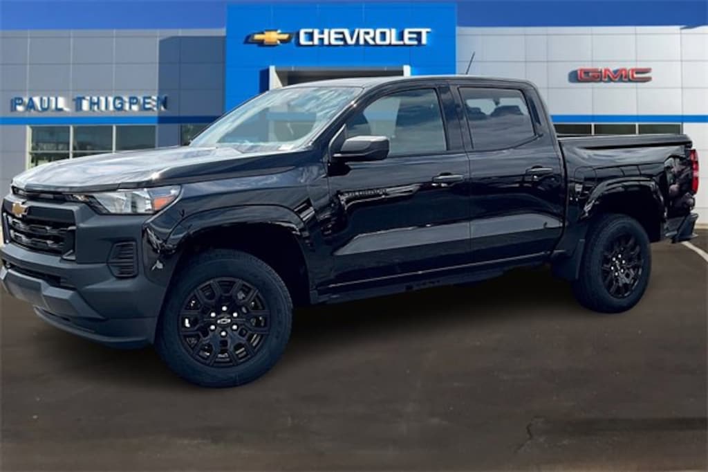 Black 2026 Chevrolet Colorado Work Truck 2.7L I4 Turbocharged DOHC 16V LEV3-ULEV50 310hp RWD Preferred Equipment Group 2WT (Automatic Emergency Braking, Chevy Safety Assist, Following Distance Indicator, Forward Collision Alert, Front Pedestrian & Bicyclist Braking, IntelliBeam Automatic High Beam On/Off, and Lane Keep Assist w/Lane Departure Warning), WT Convenience Package II (4-Spoke Wrapped Steering Wheel, 8-Way Power Driver Seat Adjuster, EZ-Lift & Lower Tailgate, Power Driver Lumbar Control Seat Adjuster, StowFlex Tailgate Storage Compartment, and Tailgate Keyed Cylinder Lock), WT Custom Package (Black Nameplates (LPO) and Wheels: 18 x 8.5 Black High Gloss Aluminum), 3.42 Rear Axle Ratio, 4-Way Manual Passenger Seat Adjuster, 4-Wheel Disc Brakes, 6 Speakers, 6-Speaker Audio System Feature, 6-Way Manual Driver Seat Adjuster, ABS brakes, Air Conditioning, AM/FM radio: SiriusXM with 360L, Apple CarPlay/Android Auto, Auto High-beam Headlights, Brake assist, Cargo Tie-Down Rings (Set of 4) (LPO), Cloth Seat Trim, Delay-off headlights, Driver door bin, Driver vanity mirror, Dual front impact airbags, Dual front side impact airbags, Electronic Stability Control, Emergency communication system: OnStar, Front anti-roll bar, Front Bucket Seats, Front Center Armrest, Front License Plate Kit, Front wheel independent suspension, Heated door mirrors, Low tire pressure warning, Navigation System, Occupant sensing airbag, Overhead airbag, Panic alarm, Passenger door bin, Passenger vanity mirror, Power door mirrors, Power steering, Power windows, Radio data system, Radio: 11.3 Diagonal Advanced Color LCD Display, Rear step bumper, Rear window defroster, Remote keyless entry, Security system, SiriusXM w/360L Trial Subscription, Speed control, Speed-sensing steering, Split folding rear seat, Steering Wheel Mounted Audio Controls, Steering wheel mounted audio controls, Tachometer, Tilt steering wheel, Traction control, Trip computer, Variably intermittent wipers, Wheels: 17 x 8 Ultra Silver Metallic Steel, and Wireless Phone Projection.