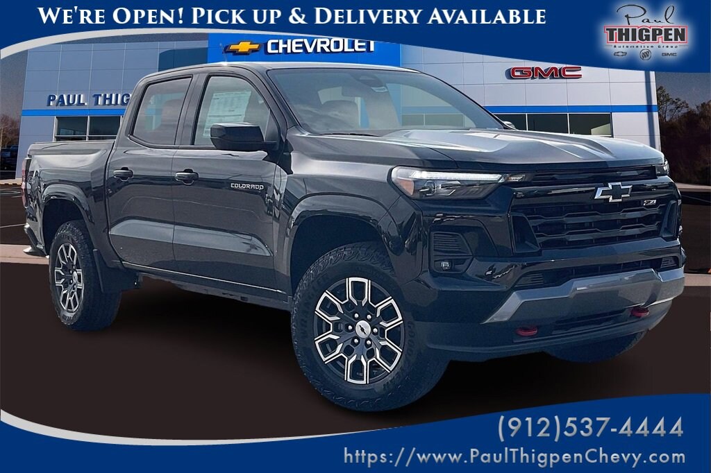 Paul Thigpen Chevrolet GMC 100 Semco Drive Vidalia, Georgia 30474 (844) 283-5935 www.paulthigpenchevy.com Paul Thigpen Chevrolet GMC has New car Preped this 2026 Chevrolet Colorado and comes with the following Preferred Equipment Group 4Z7 (Automatic Emergency Braking, Chevy Safety Assist, Following Distance Indicator, Forward Collision Alert, Front Pedestrian and Bicyclist Braking, IntelliBeam Automatic High Beam on/Off, and Lane Keep Assist with Lane Departure Warning), Z71 Convenience Package III (Driver and Front Passenger Ventilated Seats, Driver Memory Settings, Driver Seatback Map Pocket, Heated Steering Wheel, Perforated Leather-Appointed Seat Trim, and Rear Center Armrest), 4WD, 3.42 Rear Axle Ratio, 4-Way Manual Passenger Seat Adjuster, 4-Wheel Disc Brakes, 6 Speakers, 6-Speaker Audio System Feature, 8-Way Power Driver Seat Adjuster, ABS brakes, Air Conditioning, Alloy wheels, AM/FM radio: SiriusXM with 360L, Apple CarPlay/Android Auto, Auto High-beam Headlights, Auto-dimming Rear-View mirror, Automatic temperature control, Brake assist, Bumpers: body-color, Cloth/Evotex Seat Trim, Compass, Delay-off headlights, Driver and Front Passenger Heated Seats, Driver door bin, Driver vanity mirror, Dual front impact airbags, Dual front side impact airbags, Electronic Stability Control, Emergency communication system: OnStar, Front anti-roll bar, Front Bucket Seats, Front Center Armrest, Front dual zone A/C, Front fog lights, Front Passenger Seatback Map Pocket, Front reading lights, Front wheel independent suspension, Heated door mirrors, Heated front seats, Illuminated entry, Low tire pressure warning, Navigation System, Occupant sensing airbag, Outside temperature display, Overhead airbag, Overhead console, Panic alarm, Passenger door bin, Passenger vanity mirror, Power door mirrors, Power Driver Lumbar Control Seat Adjuster, Power driver seat, Power Sliding Glass with Manual Shade Sunroof, Power steering, Power windows, Radio data system, Radio: 11.3 Diagonal Advanced Color LCD Display, Rear reading lights, Rear step bumper, Rear window defroster, Remote keyless entry, Security system, SiriusXM with 360L Trial Subscription, Speed control, Speed-sensing steering, Split folding rear seat, Steering Wheel Mounted Audio Controls, Steering wheel mounted audio controls, Tachometer, Telescoping steering wheel, Tilt steering wheel, Traction control, Trip computer, Variably intermittent wipers, Wheels: 18 x 8.5 Android Dark Full Gloss Aluminum, and Wireless Phone ProjectioN.Recent Arrival!Black 2026 Chevrolet Colorado Z71 4WD 8-Speed Automatic 2.7L I4 Turbocharged DOHC 16V LEV3-ULEV50 310hp4WD.