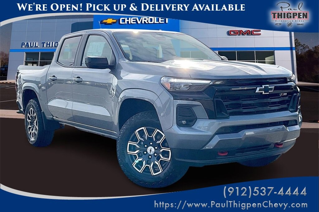 Paul Thigpen Chevrolet GMC 100 Semco Drive Vidalia, Georgia 30474 (844) 283-5935 www.paulthigpenchevy.com Paul Thigpen Chevrolet GMC has New car Preped this 2026 Chevrolet Colorado and comes with the following Preferred Equipment Group 4Z7 (Automatic Emergency Braking, Chevy Safety Assist, Following Distance Indicator, Forward Collision Alert, Front Pedestrian and Bicyclist Braking, IntelliBeam Automatic High Beam on/Off, and Lane Keep Assist with Lane Departure Warning), 4WD, 3.42 Rear Axle Ratio, 4-Way Manual Passenger Seat Adjuster, 4-Wheel Disc Brakes, 6 Speakers, 6-Speaker Audio System Feature, 8-Way Power Driver Seat Adjuster, ABS brakes, Air Conditioning, Alloy wheels, AM/FM radio: SiriusXM with 360L, Apple CarPlay/Android Auto, Auto High-beam Headlights, Auto-dimming Rear-View mirror, Automatic temperature control, Brake assist, Bumpers: body-color, Cloth/Evotex Seat Trim, Compass, Delay-off headlights, Driver and Front Passenger Heated Seats, Driver door bin, Driver vanity mirror, Dual front impact airbags, Dual front side impact airbags, Electronic Stability Control, Emergency communication system: OnStar, Front anti-roll bar, Front Bucket Seats, Front Center Armrest, Front dual zone A/C, Front fog lights, Front Passenger Seatback Map Pocket, Front reading lights, Front wheel independent suspension, Heated door mirrors, Heated front seats, Illuminated entry, Low tire pressure warning, Navigation System, Occupant sensing airbag, Outside temperature display, Overhead airbag, Overhead console, Panic alarm, Passenger door bin, Passenger vanity mirror, Power door mirrors, Power Driver Lumbar Control Seat Adjuster, Power driver seat, Power steering, Power windows, Radio data system, Radio: 11.3 Diagonal Advanced Color LCD Display, Rear reading lights, Rear step bumper, Rear window defroster, Remote keyless entry, Security system, SiriusXM with 360L Trial Subscription, Speed control, Speed-sensing steering, Split folding rear seat, Steering Wheel Mounted Audio Controls, Steering wheel mounted audio controls, Tachometer, Telescoping steering wheel, Tilt steering wheel, Traction control, Trip computer, Variably intermittent wipers, Wheels: 18 x 8.5 Android Dark Full Gloss Aluminum, and Wireless Phone ProjectioN.Recent Arrival!Sterling Gray Metallic 2026 Chevrolet Colorado Z71 4WD 8-Speed Automatic 2.7L I4 Turbocharged DOHC 16V LEV3-ULEV50 310hp4WD.