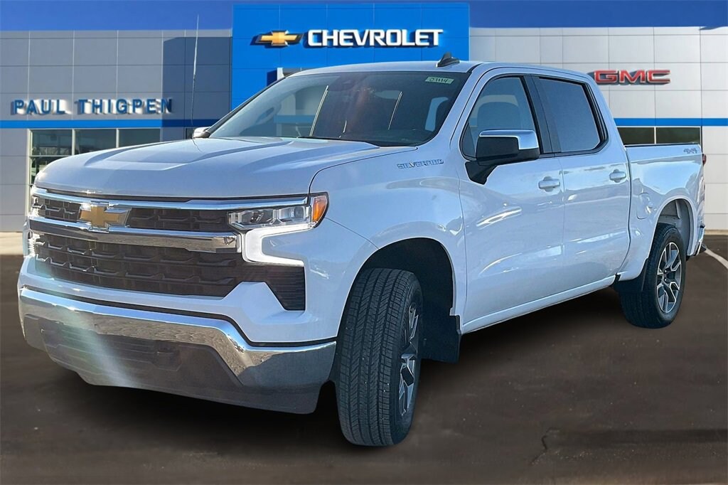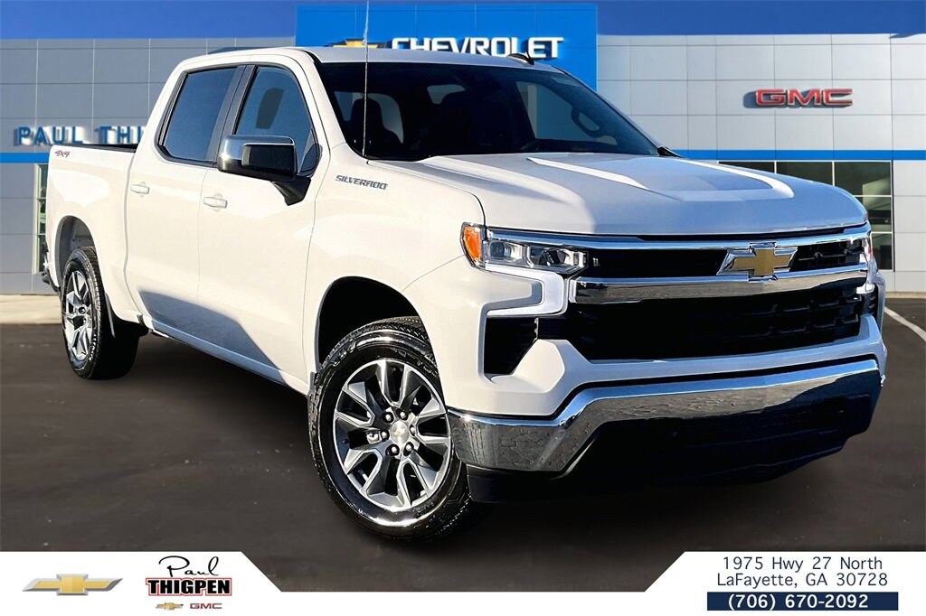 Summit White 2026 Chevrolet Silverado 1500 LT EcoTec3 5.3L V8 4WD Convenience Package (10-Way Power Driver Seat w/Lumbar, 120-Volt Bed Mounted Power Outlet, 120-Volt Interior Power Outlet, Dual Rear USB Ports (Charge Only), Dual-Zone Automatic Climate Control, Heated Driver & Front Outboard Passenger Seats, Heated Steering Wheel, Keyless Open & Start, LED Cargo Area Lighting, Manual Tilt/Telescoping Steering Column, and Wrapped Steering Wheel), High Capacity Suspension Package, Preferred Equipment Group 1LT (12.3 Multicolor Reconfigurable Digital Display, All-Star Edition, Auto-Locking Rear Differential, Bluetooth® For Phone, Chrome Mirror Caps, Color-Keyed Carpeting Floor Covering, Deep-Tinted Glass, Electronic Cruise Control, EZ Lift Power Lock & Release Tailgate, Front Frame-Mounted Black Recovery Hooks, Front Rubberized Vinyl Floor Mats, HD Rear Vision Camera, Heated Power-Adjustable Outside Mirrors, Inside Rear-View Mirror w/Tilt, Integrated Trailer Brake Controller, OnStar Services Capable, Power Front Windows w/Driver Express Up/Down, Power Front Windows w/Passenger Express Down, Power Rear Windows w/Express Down, Rear 60/40 Folding Bench Seat (Folds Up), Rear Rubberized-Vinyl Floor Mats, SiriusXM w/360L Trial Subscription, Standard Tailgate, Steering Wheel Audio Controls, Teen Driver, Tire Pressure Monitoring System, and Wi-Fi Hot Spot Capable), Remote Start Package (Electric Rear-Window Defogger, Remote Vehicle Starter System, and Theft Deterrent System (Unauthorized Entry)), Standard Suspension Package, Trailering Package (Hitch Guidance), 10-Speed Automatic, 4WD, Black Cloth, 170 Amp Alternator, 220 Amp Alternator, 3.23 Rear Axle Ratio, 4-Wheel Disc Brakes, 40/20/40 Front Split-Bench Seat, 6 Speakers, 6-Speaker Audio System, ABS brakes, Air Conditioning, Alloy wheels, AM/FM radio: SiriusXM with 360L, Apple CarPlay/Android Auto, Auto High-beam Headlights, Automatic Emergency Braking, Automatic temperature control, Auxiliary External Transmission Oil Cooler, Brake assist, Bumpers: chrome, Cloth Seat Trim, Compass, Delay-off headlights, Driver door bin, Driver vanity mirror, Dual front impact airbags, Dual front side impact airbags, Electronic Stability Control, Emergency communication system: OnStar, External Engine Oil Cooler, Following Distance Indicator, Forward Collision Alert, Front anti-roll bar, Front Center Armrest w/Storage, Front dual zone A/C, Front Pedestrian Braking, Front reading lights, Front wheel independent suspension, Fully automatic headlights, Heated door mirrors, Heated front seats, Heated steering wheel, Illuminated entry, IntelliBeam Automatic High Beam On/Off, Lane Keep Assist w/Lane Departure Warning, Low tire pressure warning, Occupant sensing airbag, Outside temperature display, Overhead airbag, Overhead console, Panic alarm, Passenger door bin, Passenger vanity mirror, Power door mirrors, Power driver seat, Power steering, Power windows, Premium audio system: Chevrolet Infotainment 3 Premium, Radio data system, Radio: Chevrolet Infotainment 3 Premium System, Rear reading lights, Rear step bumper, Rear window defroster, Remote keyless entry, Security system, Speed control, Speed-sensing steering, Split folding rear seat, Steering wheel mounted audio controls, Tachometer, Telescoping steering wheel, Tilt steering wheel, Traction control, Trip computer, Variably intermittent wipers, Voltmeter, Wheels: 17 x 8 Bright Silver Painted Aluminum, and Wheels: 20 x 9 Painted Aluminum. 10-Speed Automatic, 4WD, Black Cloth.* *Discounted price Includes our Paul Thigpen Chevrolet GMC La Fayette TRADE-IN ASSISTANCE discount of $2,000.00* * * *Discounted price Includes our Paul Thigpen Chevrolet GMC La Fayette FINANCE WITH US -N- SAVE discount of $1,250.00* * - All discounts & promo offers are reflected in in discounted pricing (see qualifying details below) - To qualify for Trade-In Assistance - Price includes: $1500 - Bonus Cash. Exp. 01/02/2026 $3250 - Customer Cash. Exp. 01/0