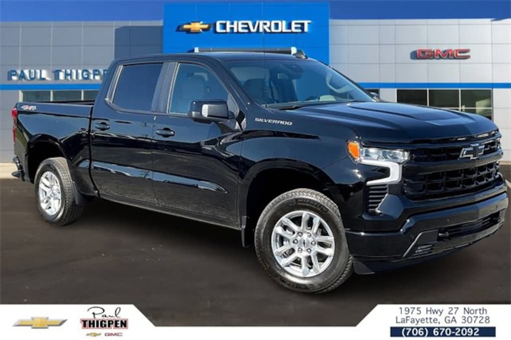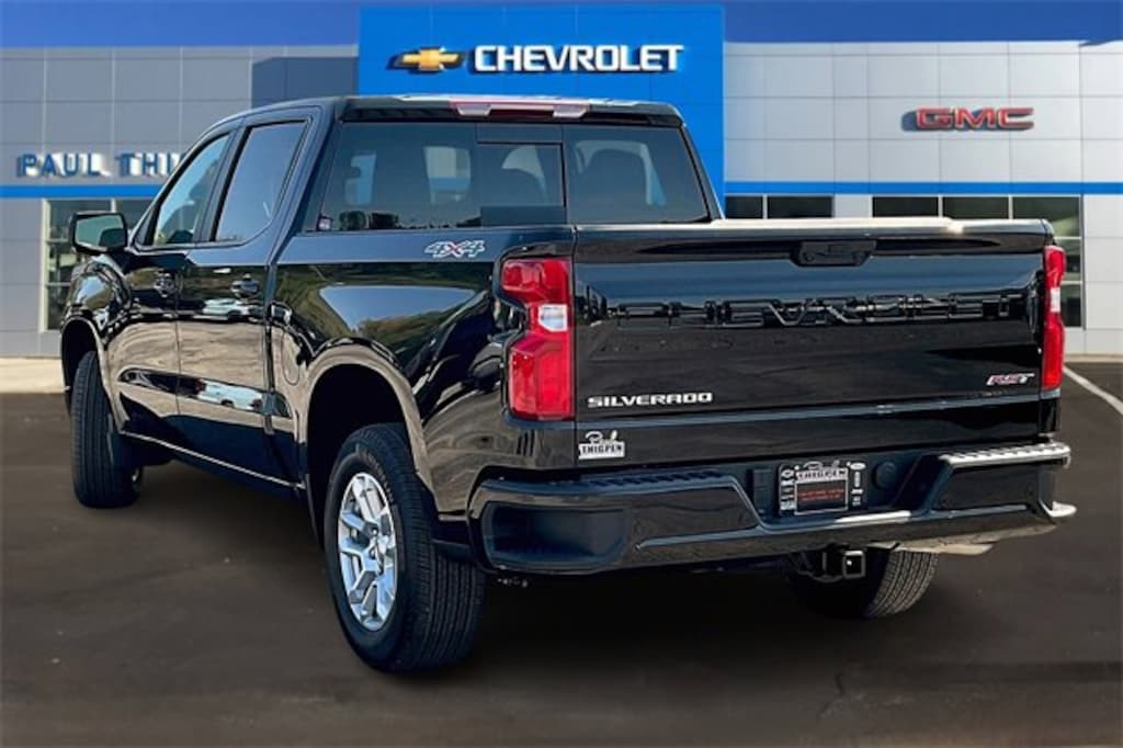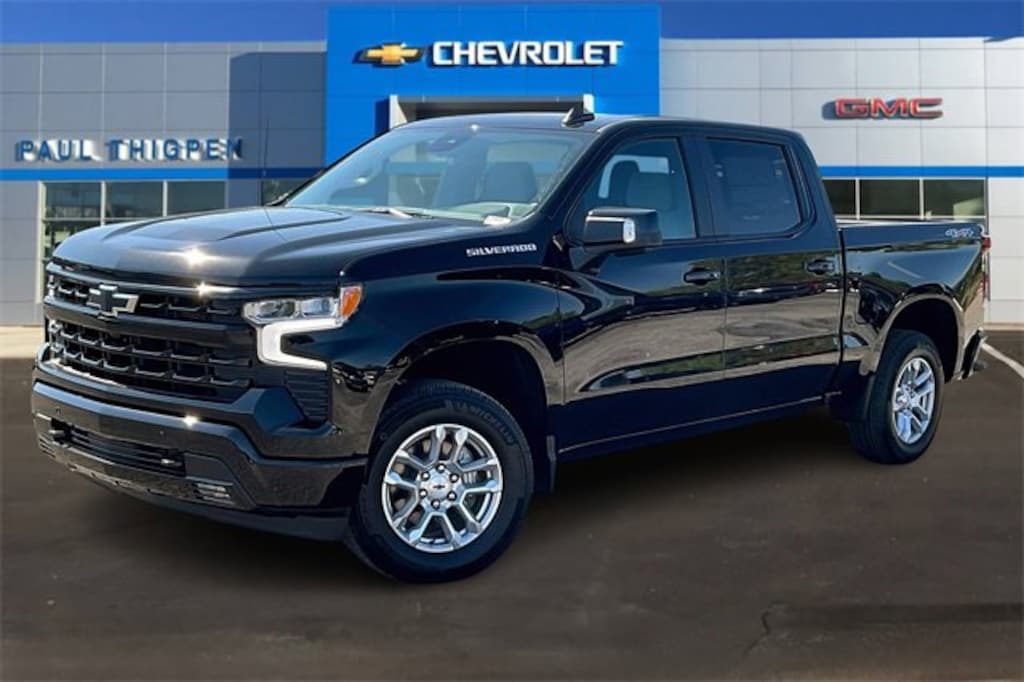 Black 2026 Chevrolet Silverado 1500 RST EcoTec3 5.3L V8 4WD Convenience Package (10-Way Power Driver Seat w/Lumbar, 120-Volt Bed Mounted Power Outlet, 120-Volt Interior Power Outlet, Dual Rear USB Ports (Charge Only), Dual-Zone Automatic Climate Control, Electric Rear-Window Defogger, Heated Driver & Front Outboard Passenger Seats, Heated Steering Wheel, Keyless Open & Start, LED Cargo Area Lighting, Manual Tilt/Telescoping Steering Column, Remote Vehicle Starter System, Theft Deterrent System (Unauthorized Entry), and Wrapped Steering Wheel), Convenience Package II (Hitch Guidance w/Hitch View, In-Vehicle Trailering System App, Power Sliding Rear Window w/Rear Defogger, Premium Bose 7-Speaker Sound System, and Universal Home Remote), Preferred Equipment Group 1SP (12.3 Multicolor Reconfigurable Digital Display, 6-Speaker Audio System, All-Star Edition, Auto-Locking Rear Differential, Bluetooth® For Phone, Color-Keyed Carpeting Floor Covering, Deep-Tinted Glass, Electronic Cruise Control, EZ Lift Power Lock & Release Tailgate, Front Frame-Mounted Black Recovery Hooks, Front LED Fog Lamps, Front Rubberized Vinyl Floor Mats, HD Rear Vision Camera, Heated Power-Adjustable Outside Mirrors, High Gloss Black Mirror Caps, Inside Rear-View Mirror w/Tilt, Integrated Trailer Brake Controller, OnStar Services Capable, Power Front Windows w/Driver Express Up/Down, Power Front Windows w/Passenger Express Down, Power Rear Windows w/Express Down, Rear 60/40 Folding Bench Seat (Folds Up), Rear Rubberized-Vinyl Floor Mats, SiriusXM w/360L Trial Subscription, Standard Tailgate, Steering Wheel Audio Controls, Teen Driver, Tire Pressure Monitoring System, and Wi-Fi Hot Spot Capable), Protection Package (Chevytec Spray-On Black Bedliner and Rear Wheelhouse Liners), Safety Package (HD Surround Vision, Perimeter Lighting, Rear Cross Traffic Braking, Rear Pedestrian Alert, Trailer Camera Provisions, Trailer Side Blind Zone Alert, and Ultrasonic Front & Rear Park Assist), Standard Suspension Package, Trailering Package (Hitch Guidance), 10-Speed Automatic, 4WD, Gideon/Very Dark Atmosphere Cloth, 170 Amp Alternator, 2 USB Data Ports, 220 Amp Alternator, 3.23 Rear Axle Ratio, 4-Wheel Disc Brakes, 40/20/40 Front Split-Bench Seat, 6 Speakers, ABS brakes, Air Conditioning, All-Weather Floor Liner (LPO), Alloy wheels, AM/FM radio: SiriusXM with 360L, Apple CarPlay/Android Auto, Auto High-beam Headlights, Automatic Emergency Braking, Automatic temperature control, Auxiliary External Transmission Oil Cooler, Brake assist, Bumpers: body-color, Cloth Seat Trim, Compass, Delay-off headlights, Driver door bin, Driver vanity mirror, Dual front impact airbags, Dual front side impact airbags, Electronic Stability Control, Electronic Transmission Range Selector Shifter, Emergency communication system: OnStar, External Engine Oil Cooler, Floor Mounted Center Console, Following Distance Indicator, Forward Collision Alert, Front anti-roll bar, Front Bucket Seats, Front Center Armrest w/Storage, Front dual zone A/C, Front fog lights, Front License Plate Kit, Front Pedestrian Braking, Front reading lights, Front wheel independent suspension, Fully automatic headlights, Heated door mirrors, Heated front seats, Heated steering wheel, Illuminated entry, IntelliBeam Automatic High Beam On/Off, Lane Keep Assist w/Lane Departure Warning, Low tire pressure warning, Occupant sensing airbag, Outside temperature display, Overhead airbag, Overhead console, Panic alarm, Passenger door bin, Passenger vanity mirror, Power door mirrors, Power driver seat, Power steering, Power Sunroof, Power windows, Premium audio system: Chevrolet Infotainment 3 Premium, Radio data system, Radio: Chevrolet Infotainment 3 Premium System, Rear reading lights, Rear step bumper, Rear window defroster, Remote keyless entry, Security system, Single Outlet Exhaust, Speed control, Speed-sensing steering, Split foldi Price includes: $1500 - Bonus Cash. Exp. 12/0