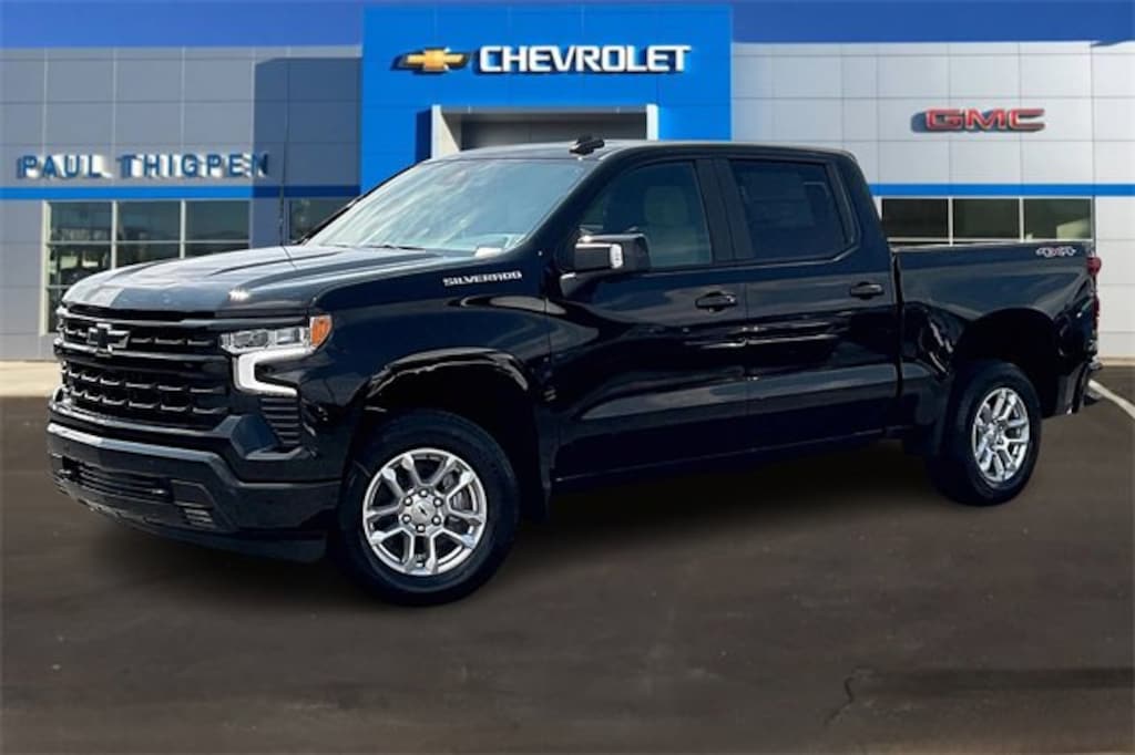 Black 2026 Chevrolet Silverado 1500 RST EcoTec3 5.3L V8 4WD Convenience Package (10-Way Power Driver Seat w/Lumbar, 120-Volt Bed Mounted Power Outlet, 120-Volt Interior Power Outlet, Dual Rear USB Ports (Charge Only), Dual-Zone Automatic Climate Control, Electric Rear-Window Defogger, Heated Driver & Front Outboard Passenger Seats, Heated Steering Wheel, Keyless Open & Start, LED Cargo Area Lighting, Manual Tilt/Telescoping Steering Column, Remote Vehicle Starter System, Theft Deterrent System (Unauthorized Entry), and Wrapped Steering Wheel), Convenience Package II (Hitch Guidance w/Hitch View, In-Vehicle Trailering System App, Power Sliding Rear Window w/Rear Defogger, Premium Bose 7-Speaker Sound System, and Universal Home Remote), Preferred Equipment Group 1SP (12.3 Multicolor Reconfigurable Digital Display, 6-Speaker Audio System, All-Star Edition, Auto-Locking Rear Differential, Bluetooth® For Phone, Color-Keyed Carpeting Floor Covering, Deep-Tinted Glass, Electronic Cruise Control, EZ Lift Power Lock & Release Tailgate, Front Frame-Mounted Black Recovery Hooks, Front LED Fog Lamps, Front Rubberized Vinyl Floor Mats, HD Rear Vision Camera, Heated Power-Adjustable Outside Mirrors, High Gloss Black Mirror Caps, Inside Rear-View Mirror w/Tilt, Integrated Trailer Brake Controller, OnStar Services Capable, Power Front Windows w/Driver Express Up/Down, Power Front Windows w/Passenger Express Down, Power Rear Windows w/Express Down, Rear 60/40 Folding Bench Seat (Folds Up), Rear Rubberized-Vinyl Floor Mats, SiriusXM w/360L Trial Subscription, Standard Tailgate, Steering Wheel Audio Controls, Teen Driver, Tire Pressure Monitoring System, and Wi-Fi Hot Spot Capable), Protection Package (Chevytec Spray-On Black Bedliner and Rear Wheelhouse Liners), Safety Package (HD Surround Vision, Perimeter Lighting, Rear Cross Traffic Braking, Rear Pedestrian Alert, Trailer Camera Provisions, Trailer Side Blind Zone Alert, and Ultrasonic Front & Rear Park Assist), Standard Suspension Package, Trailering Package (Hitch Guidance), 10-Speed Automatic, 4WD, Gideon/Very Dark Atmosphere Cloth, 170 Amp Alternator, 2 USB Data Ports, 220 Amp Alternator, 3.23 Rear Axle Ratio, 4-Wheel Disc Brakes, 40/20/40 Front Split-Bench Seat, 6 Speakers, ABS brakes, Air Conditioning, All-Weather Floor Liner (LPO), Alloy wheels, AM/FM radio: SiriusXM with 360L, Apple CarPlay/Android Auto, Auto High-beam Headlights, Automatic Emergency Braking, Automatic temperature control, Auxiliary External Transmission Oil Cooler, Brake assist, Bumpers: body-color, Cloth Seat Trim, Compass, Delay-off headlights, Driver door bin, Driver vanity mirror, Dual front impact airbags, Dual front side impact airbags, Electronic Stability Control, Electronic Transmission Range Selector Shifter, Emergency communication system: OnStar, External Engine Oil Cooler, Floor Mounted Center Console, Following Distance Indicator, Forward Collision Alert, Front anti-roll bar, Front Bucket Seats, Front Center Armrest w/Storage, Front dual zone A/C, Front fog lights, Front License Plate Kit, Front Pedestrian Braking, Front reading lights, Front wheel independent suspension, Fully automatic headlights, Heated door mirrors, Heated front seats, Heated steering wheel, Illuminated entry, IntelliBeam Automatic High Beam On/Off, Lane Keep Assist w/Lane Departure Warning, Low tire pressure warning, Occupant sensing airbag, Outside temperature display, Overhead airbag, Overhead console, Panic alarm, Passenger door bin, Passenger vanity mirror, Power door mirrors, Power driver seat, Power steering, Power Sunroof, Power windows, Premium audio system: Chevrolet Infotainment 3 Premium, Radio data system, Radio: Chevrolet Infotainment 3 Premium System, Rear reading lights, Rear step bumper, Rear window defroster, Remote keyless entry, Security system, Single Outlet Exhaust, Speed control, Speed-sensing steering, Split foldi Price includes: $1000 - Bonus Cash. Exp. 11/0