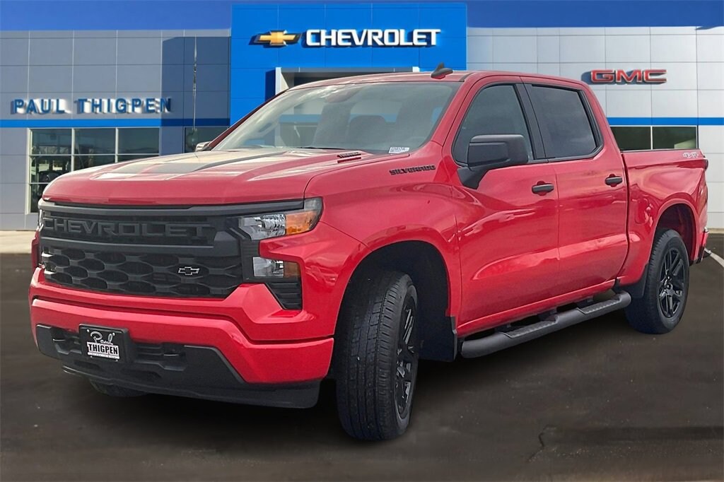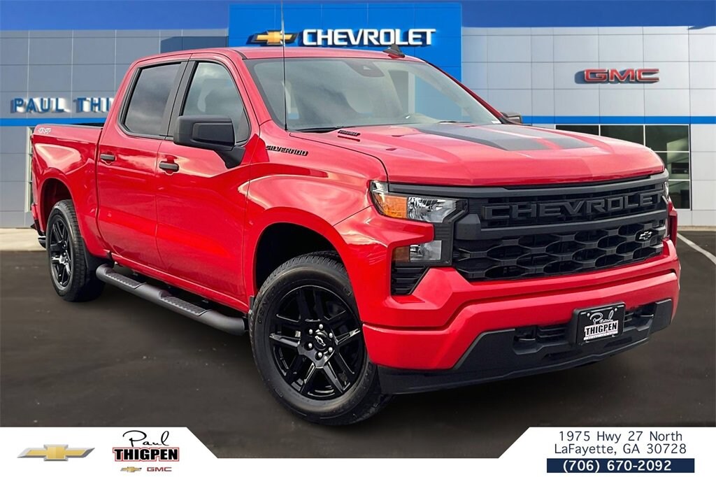 Red Hot 2026 Chevrolet Silverado 1500 Custom 2.7L I4 Turbocharged DOHC 16V LEV3-SULEV30 310hp 4WD Custom Convenience Package (Electric Rear-Window Defogger, EZ Lift Power Lock & Release Tailgate, LED Cargo Area Lighting, Remote Vehicle Starter System, and Theft Deterrent System (Unauthorized Entry)), Custom Value Package, High Capacity Suspension Package, Preferred Equipment Group 1CX (10-Way Power Driver Seat w/Lumbar, 120-Volt Bed Mounted Power Outlet, 120-Volt Interior Power Outlet, 3.5 Monochromatic Display Driver Info Center, Bluetooth® For Phone, Color-Keyed Carpeting Floor Covering, Deep-Tinted Glass, Dual Rear USB Ports (Charge Only), Electronic Cruise Control, Front Frame-Mounted Black Recovery Hooks, Front Rubberized Vinyl Floor Mats, HD Rear Vision Camera, Manual Tilt Wheel Steering Column, OnStar Services Capable, Power Front Windows w/Driver Express Up/Down, Power Front Windows w/Passenger Express Down, Power Rear Windows w/Express Down, Rear 60/40 Folding Bench Seat (Folds Up), Rear Rubberized-Vinyl Floor Mats, Remote Keyless Entry, SiriusXM Trial Subscription, Standard Tailgate, Teen Driver, Tire Pressure Monitoring System, and Wi-Fi Hot Spot Capable), Rally Edition (4 Black Round Assist Steps (LPO), Black Chrome Exhaust Tip (LPO), Chevytec Spray-On Black Bedliner, and Wheels: 20 x 9 High Gloss Black Painted Alum), Trailering Package (Hitch Guidance), 8-Speed Automatic, 4WD, Black Cloth, 3.42 Rear Axle Ratio, 4-Wheel Disc Brakes, 40/20/40 Front Split-Bench Seat, 6 Speakers, 6-Speaker Audio System, ABS brakes, Air Conditioning, Alloy wheels, AM/FM radio: SiriusXM, Apple CarPlay/Android Auto, Auto High-beam Headlights, Automatic Emergency Braking, Brake assist, Bumpers: body-color, Cloth Seat Trim, Compass, Delay-off headlights, Deleted Mobile Service Plus, Driver door bin, Driver vanity mirror, Dual front impact airbags, Dual front side impact airbags, Electronic Stability Control, Emergency communication system: OnStar, Following Distance Indicator, Forward Collision Alert, Front anti-roll bar, Front Center Armrest w/Storage, Front License Plate Kit, Front Pedestrian Braking, Front reading lights, Front wheel independent suspension, Fully automatic headlights, Heated door mirrors, Illuminated entry, IntelliBeam Automatic High Beam On/Off, Lane Keep Assist w/Lane Departure Warning, Low tire pressure warning, Occupant sensing airbag, Outside temperature display, Overhead airbag, Overhead console, Panic alarm, Passenger door bin, Passenger vanity mirror, Power door mirrors, Power driver seat, Power steering, Power windows, Premium audio system: Chevrolet Infotainment 3, Radio data system, Radio: Chevrolet Infotainment 3 System, Rear reading lights, Rear step bumper, Rear window defroster, Remote keyless entry, Security system, Speed control, Speed-sensing steering, Split folding rear seat, Tachometer, Tilt steering wheel, Traction control, Trip computer, Variably intermittent wipers, Voltmeter, and Wheels: 20 x 9 Bright Silver Painted Aluminum. 8-Speed Automatic, 4WD, Black Cloth.* *Discounted price Includes our Paul Thigpen Chevrolet GMC La Fayette TRADE-IN ASSISTANCE discount of $2,000.00* * * *Discounted price Includes our Paul Thigpen Chevrolet GMC La Fayette FINANCE WITH US -N- SAVE discount of $1,250.00* * - All discounts & promo offers are reflected in in discounted pricing (see qualifying details below) - To qualify for Trade-In Assistance - customers must trade-in a 2010 or newer vehicle. Trade must be in working condition with current registration, taxes, inspections(safety or Gov) and misc. Fees. - To qualify for FINANCE WITH US -N- SAVE discount you must qualify for, and finance at least $10,000.00 of purchase balance through a dealer sourced Credit Union, bank, or financial institution. **Consumer must refer to this ad to receive Price includes: $1000 - Bonus Cash. Exp. 02/02/2026 $1000 - Select Market Purchase Bonus Cash. Exp. 02/02/2026 $3000 - Customer Cash. Exp. 02/0