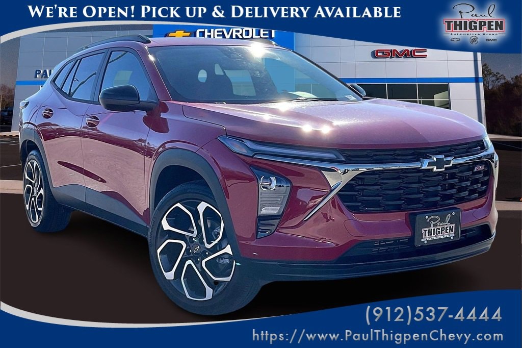 Paul Thigpen Chevrolet GMC 100 Semco Drive Vidalia, Georgia 30474 (844) 283-5935 www.paulthigpenchevy.com Paul Thigpen Chevrolet GMC has New car Preped this 2026 Chevrolet Trax and comes with the following Driver Confidence Package (Adaptive Cruise Control, Lane Change Alert with Side Blind Zone Alert, Rear Cross Traffic Alert, and Rear Park Assist), License Plate Front Mounting Package, Preferred Equipment Group 2RS, 2-Way Adjustable Front Head Restraints, 2-Way Power Driver Lumbar Seat Adjuster, 3.50 Final Drive Axle Ratio, 4-Way Manual Front Passenger Seat Adjuster, 4-Wheel Disc Brakes, 6 Speakers, 6-Speaker Audio System Feature, 8-Way Power Driver Seat Adjuster, ABS brakes, Air Conditioning, Alloy wheels, AM/FM radio: SiriusXM, Auto High-beam Headlights, Automatic temperature control, Brake assist, Bumpers: body-color, Compass, Delay-off headlights, Driver door bin, Driver vanity mirror, Dual front impact airbags, Dual front side impact airbags, Electronic Stability Control, Emergency communication system: OnStar One Essentials, Evotex Seat Trim, Exterior Parking Camera Rear, Front anti-roll bar, Front Bucket Seats, Front Center Armrest, Front reading lights, Front wheel independent suspension, Fully automatic headlights, Heated door mirrors, Heated Driver and Front Passenger Seats, Heated front seats, Heated steering wheel, Illuminated entry, Leather steering wheel, Low tire pressure warning, Occupant sensing airbag, Outside temperature display, Overhead airbag, Overhead console, Panic alarm, Passenger door bin, Passenger vanity mirror, Power door mirrors, Power driver seat, Power steering, Power windows, Premium audio system: Chevrolet Infotainment 3, Radio data system, Radio: AM/FM Stereo Audio System, Rear window defroster, Rear window wiper, Remote keyless entry, Security system, SiriusXM Trial Subscription, Speed control, Split folding rear seat, Spoiler, Sport steering wheel, Steering wheel mounted audio controls, Tachometer, Telescoping steering wheel, Tilt steering wheel, Traction control, Trip computer, Variably intermittent wipers, Wheels: 19 Black-Painted Machined Aluminum, and Wireless Apple CarPlay/Wireless Android AutO.Recent Arrival! 28/32 City/Highway MPGApex Red 2026 Chevrolet Trax 2RS FWD 6-Speed Automatic ECOTEC 1.2L Turbo
