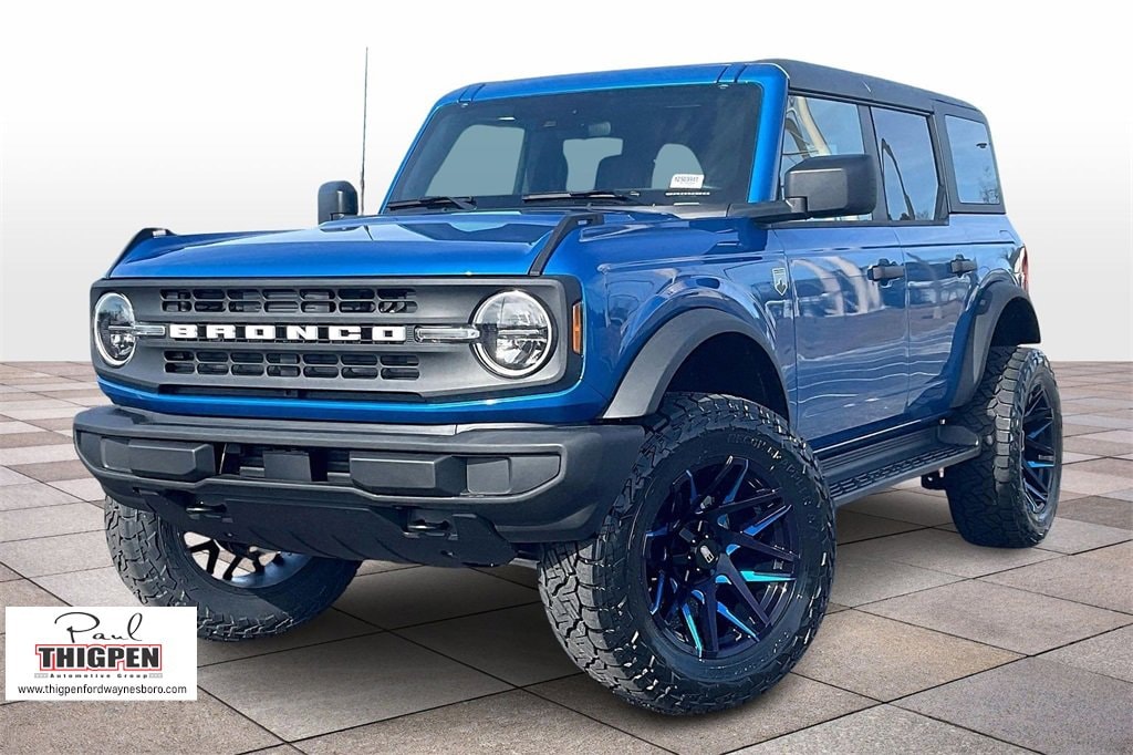 Blue Metallic 2025 Ford Bronco Big Bend 4WD 10-Speed Automatic 2.3L EcoBoost I-4 2-Door Intelligent Access w/Lock/Unlock, 4-Wheel Disc Brakes, 4.46 Axle Ratio, 7 Speakers, ABS brakes, Air Conditioning, Alloy wheels, AM/FM radio: SiriusXM with 360L, AM/FM Stereo, Ambient Footwell Lighting, Auto High-Beam Headlamps, Auto High-beam Headlights, BLIS Blind Spot Information System, Brake assist, Carbonized Gray Molded-In-Color Hard Top, Cloth Bucket Seats, Compass, Connected Navigation, Delay-off headlights, Dr & Pass Illuminated Sliding Visor Vanity Mirrors, Driver door bin, Driver vanity mirror, Dual front impact airbags, Dual front side impact airbags, Dual Smart Charging USB Ports, Dual-Zone Electronic Automatic Temperature Control, Electronic Stability Control, Emergency communication system: 911 Assist, Equipment Group 222A Mid Package, Exterior Parking Camera Rear, Front anti-roll bar, Front Bucket Seats, Front Center Armrest, Front License Plate Bracket, Front reading lights, Front Row Heated Seats, Front wheel independent suspension, Fully automatic headlights, Hard Top Sound Deadening Headliner, Heated door mirrors, Illuminated entry, Integrated roll-over protection, Internet access capable: FordPass Connect, Lane-Keeping System, Leather Shift Knob, Low tire pressure warning, Occupant sensing airbag, Outside temperature display, Overhead airbag, Overhead console, Panic alarm, Passenger door bin, Passenger vanity mirror, Power door mirrors, Power Outlet - Back Side of Center Floor Console, Power steering, Power windows, Pre-Collision Assist w/Automatic Emergency Braking, Radio data system, Rear Parking Sensors, Rear-View Camera, Rear-Window Defroster & Washer, Remote keyless entry, Security system, Side Step, SiriusXM w/360L, Speed control, Split folding rear seat, Steering wheel mounted audio controls, SYNC 4, Tachometer, Telescoping steering wheel, Tilt steering wheel, Traction control, Trip computer, Variably intermittent wipers, Wheels: 17" Carbonized Gray-Painted Aluminum.