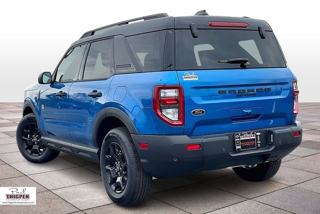 Velocity Blue Metallic 2025 Ford Bronco Sport Big Bend 4WD 8-Speed Automatic 1.5L EcoBoost 4-Wheel Disc Brakes, 6 Speakers, ABS brakes, Air Conditioning, Alloy wheels, AM/FM radio: SiriusXM, AM/FM Stereo, Auto High-beam Headlights, Automatic temperature control, Black Appearance Package, Brake assist, Carbon Black Grille w/Black BRONCO Lettering, Cargo Mat, Cloth w/Easy-to-Clean Front Bucket Seats, Compass, Convenience Package, Delay-off headlights, Driver door bin, Driver vanity mirror, Dual front impact airbags, Dual front side impact airbags, Electronic Stability Control, Emergency communication system: SYNC 4 911 Assist, Equipment Group 200A, Four wheel independent suspension, Front & Rear Floor Liners w/o Carpet Mats, Front anti-roll bar, Front Bucket Seats, Front Center Armrest, Front Driver/Passenger Seat Back Map Pockets, Front License Plate Bracket, Front reading lights, Fully automatic headlights, Heated 8-Way Power Driver's Seat, Heated door mirrors, Illuminated entry, Knee airbag, LED Fog Lamps, Liftgate w/Black BRONCO SPORT Lettering, Low tire pressure warning, Occupant sensing airbag, Outside temperature display, Overhead airbag, Overhead console, Painted Shadow Black Roof, Panic alarm, Passenger door bin, Passenger vanity mirror, Power door mirrors, Power steering, Power windows, Premium Trimmed Htd Fr Sport Contour Bucket Seats, Premium Wrapped Steering Wheel, Radio data system, Rear anti-roll bar, Rear Parking Sensors, Rear reading lights, Rear seat center armrest, Rear window defroster, Rear window wiper, Remote keyless entry, Security system, SiriusXM, Speed control, Speed-sensing steering, Speed-Sensitive Wipers, Split folding rear seat, Steering wheel mounted audio controls, SYNC 4 w/Enhanced Voice Recognition, Tachometer, Telescoping steering wheel, Tilt steering wheel, Traction control, Trip computer, Universal Garage Door Opener (UGDO), Variably intermittent wipers, Wheels: 17" Carbonized Gray-Painted Aluminum, Wheels: 17" Matte Black-Painted Aluminum.