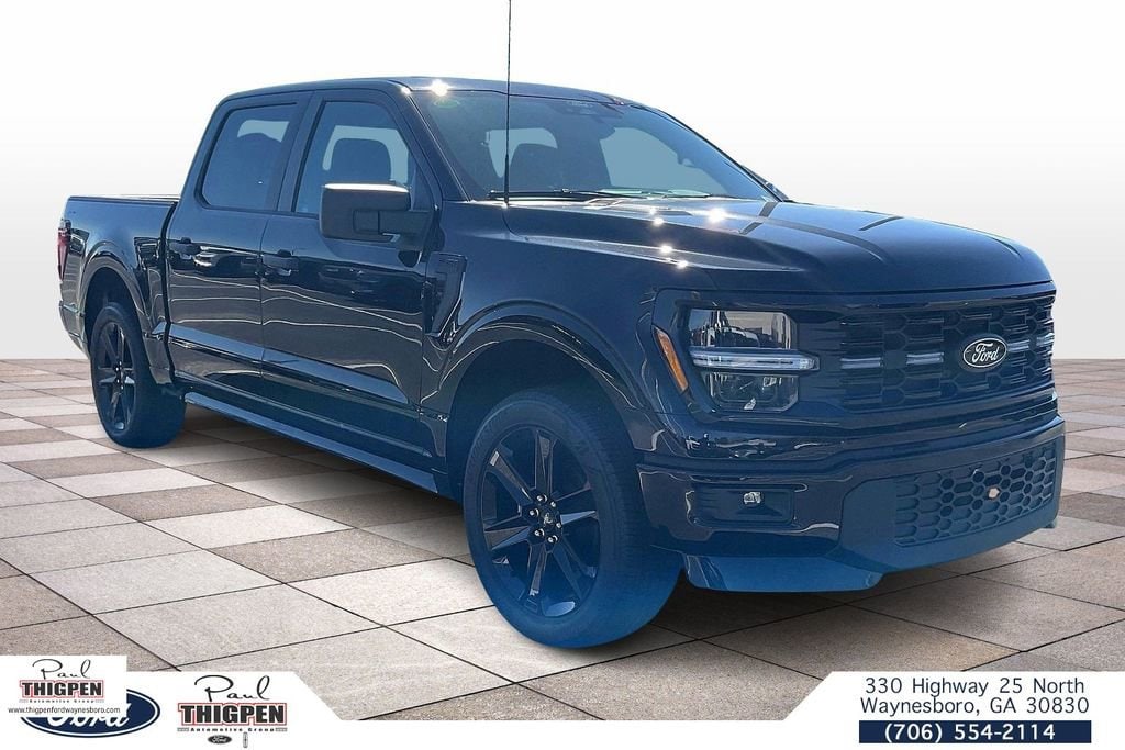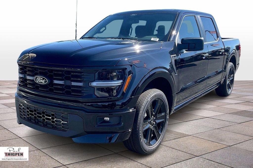 Agate Black Metallic 2025 Ford F-150 STX 4WD 10-Speed Automatic 5.0L V8 4WD, 4-Wheel Disc Brakes, 400W Cab & Bed Outlets, 6 Speakers, ABS brakes, Air Conditioning, Alloy wheels, AM/FM radio: SiriusXM with 360L, Auto High-beam Headlights, Brake assist, Bumpers: body-color, Compass, Console Worksurface, Delay-off headlights, Driver door bin, Dual Exhaust w/Black Tips, Dual front impact airbags, Dual front side impact airbags, Electronic Stability Control, Emergency communication system: SYNC 4 911 Assist, Equipment Group 200A Mid, Front anti-roll bar, Front Bucket Seats, Front Center Armrest, Front License Plate Bracket, Front reading lights, Front wheel independent suspension, Fully automatic headlights, GVWR: 6,650 lbs Payload Package, Heated door mirrors, Illuminated entry, Internet access capable: FordPass Connect 5G, LED Fog Lamps w/LED Cornering Lamp, Lobo Package, Low tire pressure warning, Lower Body Ground Effects, Mobile Office Package, Occupant sensing airbag, Outside temperature display, Overhead airbag, Overhead console, Painted Grille, Panic alarm, Passenger door bin, Passenger vanity mirror, Power door mirrors, Power steering, Power windows, Radio data system, Radio: AM/FM Stereo w/SiriusXM 360L, Rear Parking Sensors, Rear step bumper, Rear window defroster, Remote keyless entry, Security system, Signature Lighting, Speed control, Split folding rear seat, Steering wheel mounted audio controls, SYNC 4 w/Enhanced Voice Recognition, Tachometer, Telescoping steering wheel, Tilt steering wheel, Traction control, Trip computer, Two-Speed Auto 4WD w/Neutral Towing Capability, Unique Sport Cloth 40/Console/40 Front-Seats, Variably intermittent wipers, Voltmeter, Wheels: 18" Gloss Black, Wheels: 20" Dark Gray w/Machined Aluminum, Wheels: 22" Aluminum, 4WD.