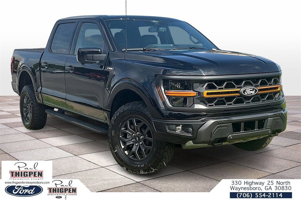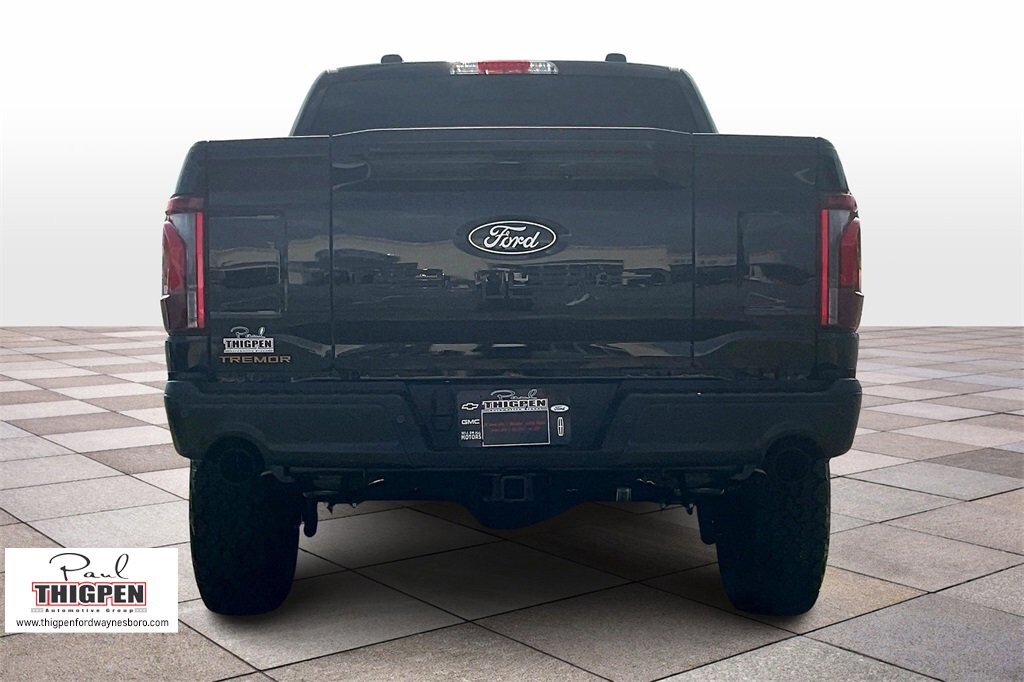 Agate Black Metallic 2025 Ford F-150 Tremor 4WD 10-Speed Automatic 5.0L V8 4WD, 2nd Row Heated Seats, 4 Pickup Box Tie-Down Plates, 4-Wheel Disc Brakes, 8 Speakers, ABS brakes, Adjustable pedals, Air Conditioning, Alloy wheels, AM/FM radio: SiriusXM with 360L, Ambient Lighting, Auto High-beam Headlights, Auto-dimming door mirrors, Auto-Dimming Rear-View Mirror, Auto-dimming Rear-View mirror, Automatic temperature control, Bed Utility Package, Brake assist, Bumpers: body-color, Compass, Console Worksurface, Delay-off headlights, Driver door bin, Driver vanity mirror, Dual front impact airbags, Dual front side impact airbags, Electronic Locking w/3.73 Axle Ratio, Electronic Stability Control, Emergency communication system: SYNC 4 911 Assist, Equipment Group 402A High, Front anti-roll bar, Front Axle w/Torsen Differential, Front Bucket Seats, Front Center Armrest, Front dual zone A/C, Front fog lights, Front License Plate Bracket, Front reading lights, Front wheel independent suspension, Fully automatic headlights, GVWR: 7,100 lbs Payload Package, Heads-Up Display, Heated door mirrors, Heated front seats, Heated Steering Wheel, Illuminated entry, Integrated Trailer Brake Controller, Internet access capable: FordPass Connect 5G, LED Box Lighting, LED Taillamps, Low tire pressure warning, Media Bin Door, Mobile Office Package, Modular Front Bumper & Carbon Black Rear Bumper, Navigation system: Connected Navigation, Occupant sensing airbag, Outside temperature display, Overhead airbag, Overhead console, Panic alarm, Partitioned Lockable Rear Storage, Passenger door bin, Passenger vanity mirror, Power door mirrors, Power driver seat, Power Glass Heated Sideview Mirrors, Power passenger seat, Power steering, Power Tailgate, Power windows, Power-Adjustable Pedals w/Memory, Premium Wrapped Steering Wheel, Radio data system, Radio: B&O Sound System by Bang & Olufsen, Radio: B&O Unleashed Sound System by Bang & Olufsen, Rain-Sensing Wipers, Rear reading lights, Rear step bumper, Rear window defroster, Remote keyless entry, Security system, Speed control, Split folding rear seat, Steering wheel mounted audio controls, SYNC 4 w/Enhanced Voice Recognition, Tachometer, Tailgate Step w/Tailgate Work Surface, Telescoping steering wheel, Tilt steering wheel, Tow/Haul Package, Traction control, Trip computer, Turn signal indicator mirrors, Twin Panel Moonroof, Two-Speed Automatic AWD w/Mechanical Locking 4WD, Unique Sport Cloth 40/Console/40 Power Front Seat, Unique Tremor Leather-Trimmed Bucket Seats, Universal Garage Door Opener, Variably intermittent wipers, Voltmeter, Wheels: 18" Alloy w/Dark Matte Finish, Wireless Charging, 4WD.