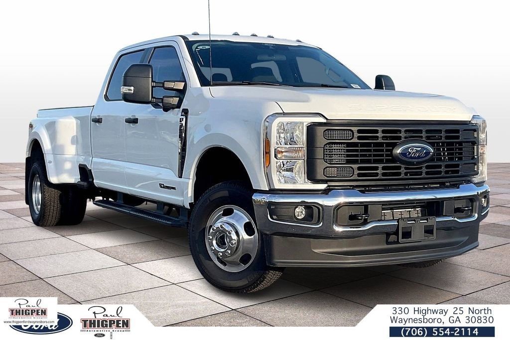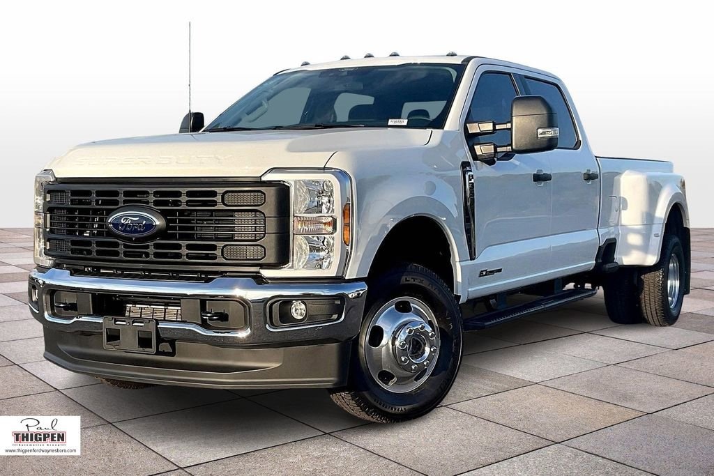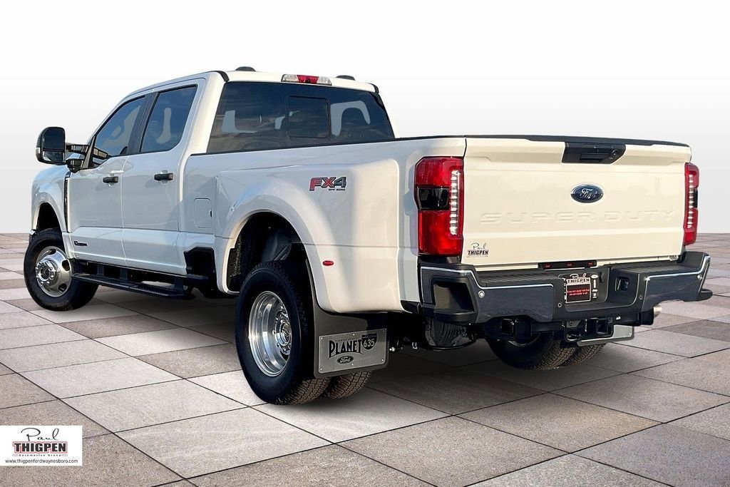 Oxford White 2025 Ford F-350SD XL DRW 4WD 10-Speed Automatic Power Stroke 6.7L V8 DI 32V OHV Turbodiesel 4WD, 17" Forged Polished Aluminum Wheels, 4-Wheel Disc Brakes, 410 Amp Dual Alternators, ABS brakes, Air Conditioning, Brake assist, Compass, Delay-off headlights, Dual front impact airbags, Dual front side impact airbags, Dual rear wheels, Electronic Stability Control, Emergency communication system: SYNC 4 911 Assist, Engine Block Heater, Front anti-roll bar, Front License Plate Bracket, Front reading lights, Fully automatic headlights, FX4 Off-Road Package, GVWR: 14,000 Lb Payload Package, Heated door mirrors, Heavy-Service Front Suspension Package, Hill Descent Control, Illuminated entry, Internet access capable: FordPass Connect 5G, Low tire pressure warning, Off-Road Specifically Tuned Shock Absorbers, Outside temperature display, Overhead airbag, Overhead console, Panic alarm, Passenger vanity mirror, Power door mirrors, Power steering, Power windows, Rear anti-roll bar, Rear reading lights, Rear step bumper, Remote keyless entry, Security system, Speed control, Split folding rear seat, Steering wheel mounted audio controls, Tachometer, Telescoping steering wheel, Tilt steering wheel, Traction control, Trip computer, Turn signal indicator mirrors, Unique FX4 Off-Road Box Decal, Upfitter Switches (6), Variably intermittent wipers, 4WD.