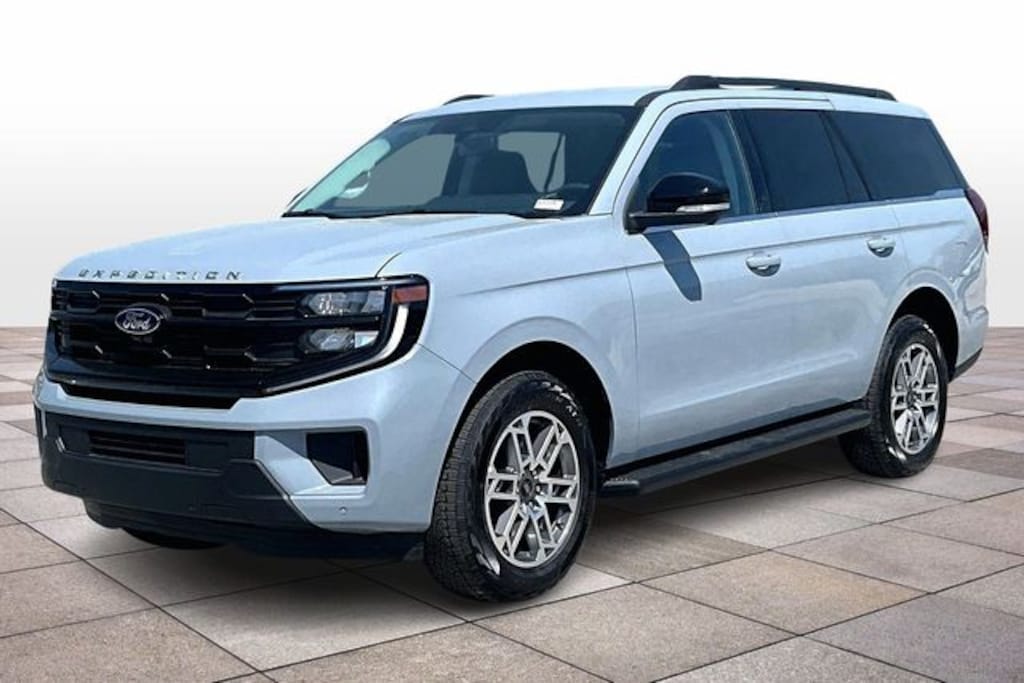 Glacier Gray Metallic Tri-Coat 2026 Ford Expedition Active 4WD 10-Speed Automatic EcoBoost 3.5L V6 GTDi DOHC 24V Twin Turbocharged Vidalia Ford Lincoln 2607 E 1st St Vidalia, Georgia 30474 912-788-5318 Ford Connectivity Package (1-Year Included), 4WD, 3.73 Axle Ratio, 3rd row seats: split-bench, 4-Wheel Disc Brakes, 6 Speakers, ABS brakes, Air Conditioning, Alloy wheels, AM/FM radio: SiriusXM with 360L, Apple CarPlay/Android Auto, Auto High-beam Headlights, Auto-dimming Rear-View mirror, Automatic temperature control, Brake assist, Bumpers: body-color, Cloth Front Captain's Chairs, Compass, Delay-off headlights, Driver door bin, Driver vanity mirror, Dual front impact airbags, Dual front side impact airbags, Electronic Stability Control, Emergency communication system: 911 Assist, Exterior Parking Camera Rear, Ford Digital Experience, Four wheel independent suspension, Front anti-roll bar, Front Bucket Seats, Front Center Armrest, Front dual zone A/C, Front reading lights, Fully automatic headlights, Heated door mirrors, Illuminated entry, Low tire pressure warning, Navigation System, Occupant sensing airbag, Outside temperature display, Overhead airbag, Overhead console, Panic alarm, Passenger door bin, Passenger vanity mirror, Power door mirrors, Power driver seat, Power passenger seat, Power steering, Power windows, Radio data system, Radio: AM/FM Stereo with MP3 Capable, Rear air conditioning, Rear anti-roll bar, Rear reading lights, Rear window defroster, Rear window wiper, Reclining 3rd row seat, Remote keyless entry, Security system, SiriusXM with 360L, Speed control, Speed-sensing steering, Speed-Sensitive Wipers, Split folding rear seat, Spoiler, Steering wheel mounted audio controls, Tachometer, Telescoping steering wheel, Tilt steering wheel, Traction control, Trip computer, Variably intermittent wipers, Voltmeter, and Wheels: 18" x 8.5" Dark Alloy Painted Aluminum. 4WD.
