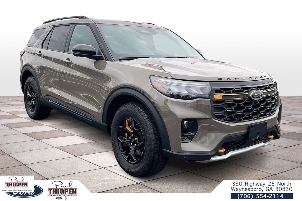 Marsh Gray 2026 Ford Explorer Tremor 4WD 10-Speed Automatic 3.0L EcoBoost V6 4WD, 10 Speakers, 3rd Row PowerFold Seats, 3rd row seats: bench, 4-Wheel Disc Brakes, ABS brakes, Air Conditioning, Alloy wheels, AM/FM radio: SiriusXM with 360L, Ambient Lighting, Apple CarPlay/Android Auto, Auto High-beam Headlights, Automatic temperature control, BlueCruise (equipment + 1-Year + 90-Day Plan), BlueCruise Hardware, Brake assist, Bumpers: body-color, Compass, Delay-off headlights, Driver door bin, Driver vanity mirror, Dual front impact airbags, Dual front side impact airbags, Electronic Stability Control, Emergency communication system: 911 Assist, Exterior Parking Camera Rear, Ford Connectivity Package (one-Time Purchase - 7 Years), Four wheel independent suspension, Front anti-roll bar, Front Bucket Seats, Front Center Armrest, Front dual zone A/C, Front fog lights, Front License Plate Bracket, Front reading lights, Fully automatic headlights, Garage door transmitter, Heated door mirrors, Heated front seats, Heated rear seats, Heated steering wheel, Heated/Ventilated Miko Suede Captain's Chairs, Illuminated entry, Knee airbag, Leather steering wheel, Low tire pressure warning, Memory Driver's Seat, Multicontour Seats with Front Active Motion, Navigation System, Occupant sensing airbag, Outside temperature display, Overhead airbag, Overhead console, Panic alarm, Panoramic Fixed Glass Roof with Power Shade, Passenger door bin, Passenger vanity mirror, Power door mirrors, Power driver seat, Power Liftgate, Power passenger seat, Power steering, Power windows, Power-Folding with Autofold Side Mirrors, Radio: B&O Sound System by Bang & Olufsen, Radio: B&O Sound System by Bang and Olufsen, Rain-Sensing Wipers (front Only), Rear air conditioning, Rear anti-roll bar, Rear reading lights, Rear window defroster, Rear window wiper, Remote keyless entry, SecuriCode Keyless Entry Keypad, Security system, Speed control, Speed-sensing steering, Speed-Sensitive Wipers, Split folding rear seat, Spoiler, Sport steering wheel, Steering wheel mounted audio controls, Tachometer, Telescoping steering wheel, Tilt steering wheel, Traction control, Tremor Ultimate Package, Trip computer, Variably intermittent wipers, Ventilated front seats, Wheels: 18" High Gloss Black-Painted Aluminum, 4WD.