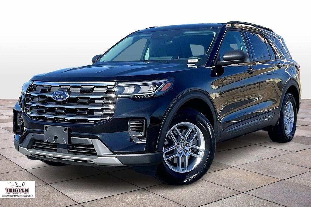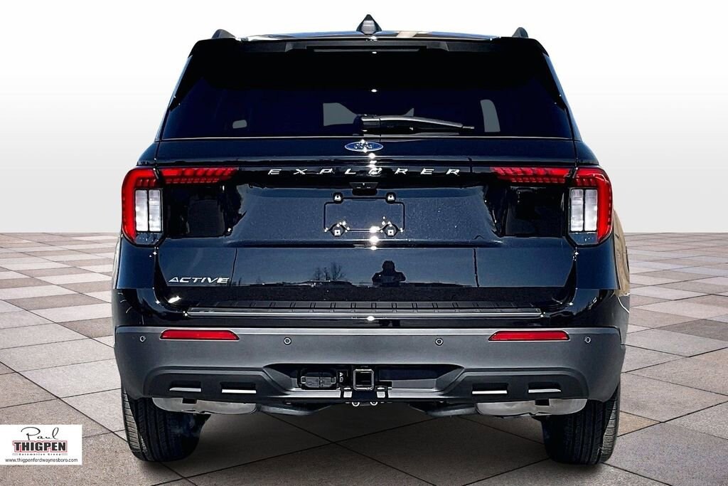 Agate Black Metallic 2026 Ford Explorer Active RWD 10-Speed Automatic 2.3L EcoBoost I-4 3rd row seats: bench, 4-Wheel Disc Brakes, 6 Speakers, ABS brakes, Air Conditioning, Alloy wheels, AM/FM radio: SiriusXM with 360L, AM/FM Stereo, Apple CarPlay/Android Auto, Auto High-beam Headlights, Automatic temperature control, Brake assist, Bumpers: body-color, Compass, Delay-off headlights, Driver door bin, Driver vanity mirror, Dual front impact airbags, Dual front side impact airbags, Electronic Stability Control, Emergency communication system: 911 Assist, Exterior Parking Camera Rear, Four wheel independent suspension, Front anti-roll bar, Front Bucket Seats, Front Center Armrest, Front dual zone A/C, Front License Plate Bracket, Front reading lights, Fully automatic headlights, Heated door mirrors, Illuminated entry, Knee airbag, Low tire pressure warning, Navigation System, Occupant sensing airbag, Outside temperature display, Overhead airbag, Overhead console, Panic alarm, Passenger door bin, Passenger vanity mirror, Power door mirrors, Power driver seat, Power steering, Power windows, Rear air conditioning, Rear anti-roll bar, Rear reading lights, Rear window defroster, Rear window wiper, Remote keyless entry, Security system, Speed control, Speed-sensing steering, Speed-Sensitive Wipers, Split folding rear seat, Spoiler, Steering wheel mounted audio controls, Tachometer, Telescoping steering wheel, Tilt steering wheel, Traction control, Trip computer, Variably intermittent wipers, Wheels: 18" Sparkle Silver-Painted Aluminum.
