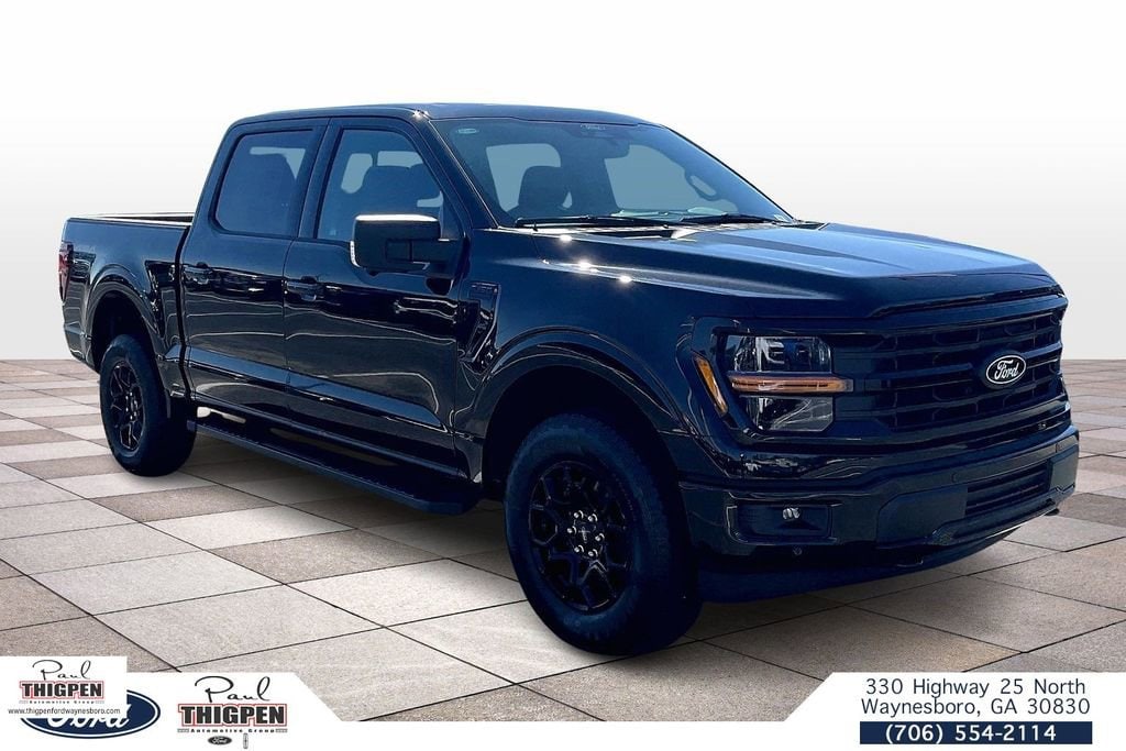 Agate Black Metallic 2026 Ford F-150 XLT 4WD 10-Speed Automatic 5.0L V8 4WD, 18" Painted Aluminum Wheels, 4-Wheel Disc Brakes, 6 Speakers, ABS brakes, Air Conditioning, Alloy wheels, AM/FM radio: SiriusXM with 360L, Auto High-beam Headlights, Brake assist, Bumpers: body-color, Compass, Delay-off headlights, Driver door bin, Driver vanity mirror, Dual front impact airbags, Dual front side impact airbags, Electronic Stability Control, Emergency communication system: SYNC 4 911 Assist, Front anti-roll bar, Front Center Armrest, Front fog lights, Front reading lights, Front wheel independent suspension, Fully automatic headlights, Heated door mirrors, Illuminated entry, Internet access capable: 5G Modem - Ford Connectivity Package, Low tire pressure warning, Occupant sensing airbag, Outside temperature display, Overhead airbag, Overhead console, Panic alarm, Passenger door bin, Passenger vanity mirror, Power door mirrors, Power steering, Power windows, Radio data system, Radio: AM/FM Stereo with SiriusXM 360L, Rear Parking Sensors, Rear reading lights, Rear step bumper, Rear window defroster, Remote keyless entry, Security system, Speed control, Split folding rear seat, Steering wheel mounted audio controls, SYNC 4 with Enhanced Voice Recognition, Tachometer, Telescoping steering wheel, Tilt steering wheel, Tough Bed Spray-in Bedliner, Tow/Haul Package, Traction control, Trip computer, Unique Sport Cloth 40/Console/40 Front-Seats, Variably intermittent wipers, XLT Black Appearance Package, 4WD.