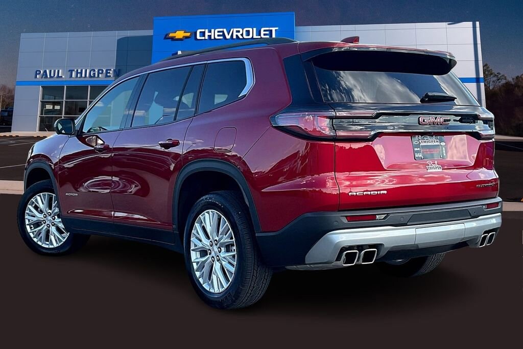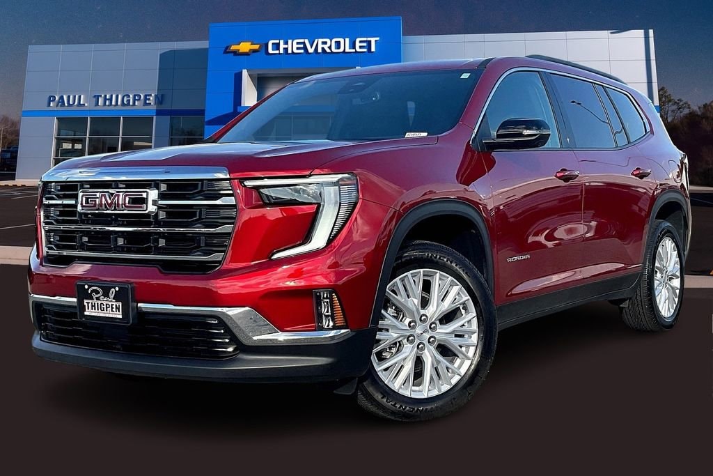 Paul Thigpen Chevrolet GMC 100 Semco Drive Vidalia, Georgia 30474 (844) 283-5935 www.paulthigpenchevy.com Paul Thigpen Chevrolet GMC has New car Preped this 2025 GMC Acadia and comes with the following Elevation Premium Package (3-Channel Programmable Universal Home Remote, 6-Way Power Front Passenger Seat Adjuster, 7-Passenger Seating (2-2-3 Seating Configuration), Auto-Dimming Inside Rear-View Mirror, CoreTec Seat Trim, Front Passenger Power Lumbar Seat Adjuster, and Wheels: 20 x 8 Bright Silver Aluminum), Preferred Equipment Group 4SC, FWD, After Dark Cloth, 12 Speakers, 18 x 7.5 Aluminum Wheels, 2-Way Driver Power Lumbar Seat Adjuster, 3.49 Final Drive Axle Ratio, 3rd row seats: split-bench, 4-Way Manual Front Passenger Seat Adjuster, 4-Wheel Disc Brakes, 8-Passenger Seating (2-3-3 Seating Configuration), 8-Way Power Driver Seat Adjuster, ABS brakes, Air Conditioning, Alloy wheels, AM/FM radio: SiriusXM with 360L, Apple CarPlay/Android Auto, Auto High-beam Headlights, Auto-dimming Rear-View mirror, Automatic temperature control, Bodyside moldings, Bose Premium 12-Speaker System with Sub-Woofer, Brake assist, Bumpers: body-color, Cloth Seat Trim, Compass, Delay-off headlights, Driver door bin, Driver vanity mirror, Dual front impact airbags, Dual front side impact airbags, Electronic Stability Control, Emergency communication system: OnStar Services capable, Exterior Parking Camera Rear, Four wheel independent suspension, Front anti-roll bar, Front Bucket Seats, Front Center Armrest, Front dual zone A/C, Front fog lights, Front License Plate Bracket, Front reading lights, Fully automatic headlights, Heated door mirrors, Heated Driver and Front Passenger Seats, Heated front seats, Heated steering wheel, Illuminated entry, Leather steering wheel, Low tire pressure warning, Navigation System, Occupant sensing airbag, Outside temperature display, Overhead airbag, Overhead console, Panic alarm, Passenger door bin, Passenger vanity mirror, Power door mirrors, Power driver seat, Power Liftgate, Power steering, Power windows, Radio data system, Radio: 15 Diagonal Premium GMC Infotainment System, Rear air conditioning, Rear anti-roll bar, Rear reading lights, Rear seat center armrest, Rear side impact airbag, Rear window defroster, Rear window wiper, Remote keyless entry, Security system, SiriusXM with 360L, Speed control, Speed-sensing steering, Split folding rear seat, Spoiler, Sport steering wheel, Steering wheel mounted audio controls, Tachometer, Telescoping steering wheel, Tilt steering wheel, Traction control, Trip computer, Turn signal indicator mirrors, Variably intermittent wipers, and VoltmeteR.