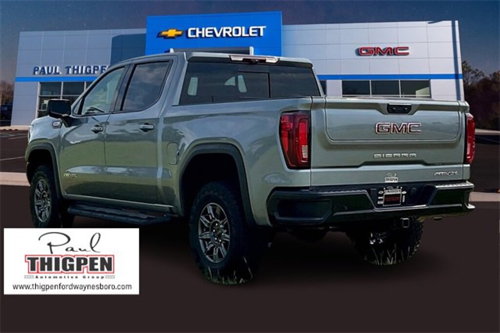 Sterling Metallic 2025 GMC Sierra 1500 AT4X 4WD 10-Speed Automatic EcoTec3 6.2L V8 10-Speed Automatic, 4WD, Obsidian Rush Leather.