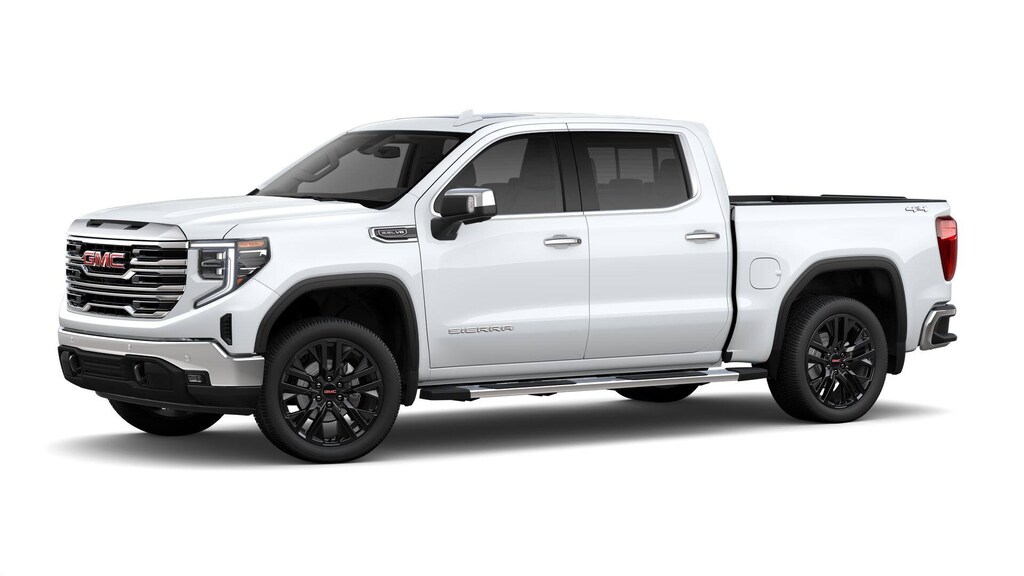 Summit White 2025 GMC Sierra 1500 SLT EcoTec3 5.3L V8 4WD High Capacity Suspension Package, Preferred Equipment Group 4SA (120-Volt Bed Mounted Power Outlet, 120-Volt Interior Power Outlet, 170 Amp Alternator, 2 Charge/Data USB Ports, 2 Type-C Charge-Only Rear USB Ports, 6-Speaker Audio System Feature, Auto-Locking Rear Differential, Auxiliary External Transmission Oil Cooler, Chrome Header & Chrome Grille Insert Bars, Color-Keyed Carpeting Floor Covering, Deep-Tinted Glass, Electric Rear-Window Defogger, Front Frame-Mounted Black Recovery Hooks, Front Rain-Sensing Wipers, HD Rear Vision Camera, Integrated Trailer Brake Controller, Keyless Open & Start, LED Cargo Area Lighting, Manual Tilt-Wheel & Telescoping Steering Column, OnStar Services Capable, Perimeter Lighting, Power Door Locks, Power Front Passenger Windows w/Express Up/Down, Power Front Windows w/Driver Express Up/Down, Power Rear Windows w/Express Down, Push Button Start, Rear Wheelhouse Liners, Remote Vehicle Starter System, SiriusXM w/360L Trial Subscription, Steering Wheel Audio Controls, Theft Deterrent System (Unauthorized Entry), and Wi-Fi Hotspot Capable), ProGrade Trailering System (Hitch View and In-Vehicle Trailering System App), Sierra Safety Plus Package (HD Surround Vision, Rear Cross Traffic Braking, Rear Pedestrian Detection, Safety Alert Seat, Trailer Camera Provisions, Trailer Side Blind Zone Alert, and Ultrasonic Front & Rear Park Assist), SLT Convenience Package (2 Charge/Data USB Ports Inside Center Console, Electronic Precision Shift, Floor-Mounted Center Console, Front Bucket Seats, Power Rake & Telescoping Steering Column, Premium Bose 7-Speaker Sound System, Ventilated Driver & Front Passenger Seats, and Wireless Charging), SLT Preferred Package (Adaptive Cruise Control, Heated 2nd Row Outboard Seats, Power Sliding Rear Window w/Rear Defogger, and Universal Home Remote), SLT Premium Package (20 Polished Aluminum Wheels and Chrome Wheel To Wheel Assist Steps), Standard Suspension Package, Trailering Package (Hitch Guidance), 10-Speed Automatic, 4WD, Jet Black Leather, 10-Way Power Driver Seat Adjuster w/Lumbar, 10-Way Power Passenger Seat Adjuster w/Lumbar, 3.23 Rear Axle Ratio, 4-Wheel Disc Brakes, 6 Speakers, ABS brakes, Air Conditioning, Alloy wheels, AM/FM radio: SiriusXM with 360L, Apple CarPlay/Android Auto, Auto High-beam Headlights, Auto-dimming door mirrors, Auto-dimming Rear-View mirror, Automatic Emergency Braking, Automatic temperature control, Brake assist, Buckle to Drive, Bumpers: chrome, Compass, Delay-off headlights, Driver door bin, Driver Memory, Driver vanity mirror, Dual front impact airbags, Dual front side impact airbags, Electronic Stability Control, Emergency communication system: OnStar, Following Distance Indicator, Forward Collision Alert, Front 40/20/40 Split-Bench Seat, Front anti-roll bar, Front Center Armrest w/Storage, Front dual zone A/C, Front fog lights, Front Pedestrian Braking, Front reading lights, Front wheel independent suspension, Fully automatic headlights, Heated door mirrors, Heated Driver & Front Outboard Passenger Seating, Heated front seats, Heated steering wheel, Illuminated entry, IntelliBeam Automatic High Beam On/Off, Lane Keep Assist w/Lane Departure Warning, Low tire pressure warning, Memory seat, Navigation System, Occupant sensing airbag, Outside temperature display, Overhead airbag, Overhead console, Panic alarm, Passenger door bin, Passenger vanity mirror, Perf Leather-Appointed Front Outboard Seat Trim, Power door mirrors, Power driver seat, Power passenger seat, Power steering, Power Sunroof, Power windows, Radio data system, Radio: Premium GMC Infotainment Audio System, Rain sensing wipers, Rear reading lights, Rear seat center armrest, Rear step bumper, Rear window defroster, Remote keyless entry, Security system, Speed control, Speed-sensing steering, Split folding rear seat, Spray- Price includes: $1500 - Bonus Cash. Exp. 11/03/2025 $2750 - Purchase Allowance. Exp. 11/03/2025