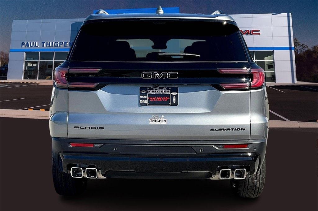 Paul Thigpen Chevrolet GMC 100 Semco Drive Vidalia, Georgia 30474 (844) 283-5935 www.paulthigpenchevy.com Paul Thigpen Chevrolet GMC has New car Preped this 2026 GMC Acadia and comes with the following Preferred Equipment Group 4SC, 4D Sport Utility, 2.5L DOHC, 8-Speed Automatic, FWD, Bose Premium 12-Speaker System w/Sub-Woofer, Navigation System, 12 Speakers, 18 x 7.5 Aluminum Wheels, 3.49 Final Drive Axle Ratio, 3rd row seats: split-bench, 4-Way Manual Front Passenger Seat Adjuster, 4-Wheel Disc Brakes, 8-Passenger Seating (2-3-3 Seating Configuration), 8-Way Power Driver Seat Adjuster, ABS brakes, Air Conditioning, Alloy wheels, AM/FM radio: SiriusXM with 360L, Apple CarPlay/Android Auto, Auto High-beam Headlights, Automatic temperature control, Bodyside moldings, Brake assist, Bumpers: body-color, Cloth Seat Trim, Compass, Delay-off headlights, Driver door bin, Driver vanity mirror, Dual front impact airbags, Dual front side impact airbags, Electronic Stability Control, Emergency communication system: OnStar Services capable, Exterior Parking Camera Rear, Four wheel independent suspension, Front anti-roll bar, Front Bucket Seats, Front Center Armrest, Front dual zone A/C, Front fog lights, Front reading lights, Fully automatic headlights, Heated door mirrors, Heated Driver & Front Passenger Seats, Heated front seats, Heated steering wheel, Illuminated entry, Leather steering wheel, Low tire pressure warning, Occupant sensing airbag, Outside temperature display, Overhead airbag, Overhead console, Panic alarm, Passenger door bin, Passenger vanity mirror, Power door mirrors, Power driver seat, Power Liftgate, Power steering, Power windows, Radio data system, Radio: 15 Premium GMC Infotainment System, Rear air conditioning, Rear anti-roll bar, Rear reading lights, Rear seat center armrest, Rear side impact airbag, Rear window defroster, Rear window wiper, Remote keyless entry, Security system, SiriusXM w/360L, Speed control, Speed-sensing steering, Split folding rear seat, Spoiler, Sport steering wheel, Steering wheel mounted audio controls, Tachometer, Telescoping steering wheel, Tilt steering wheel, Traction control, Trip computer, Turn signal indicator mirrors, Variably intermittent wipers, and VoltmeteR.