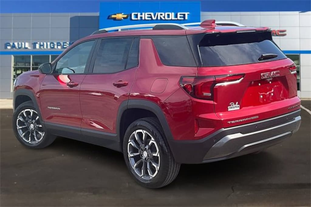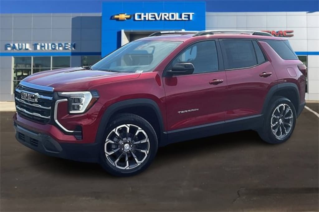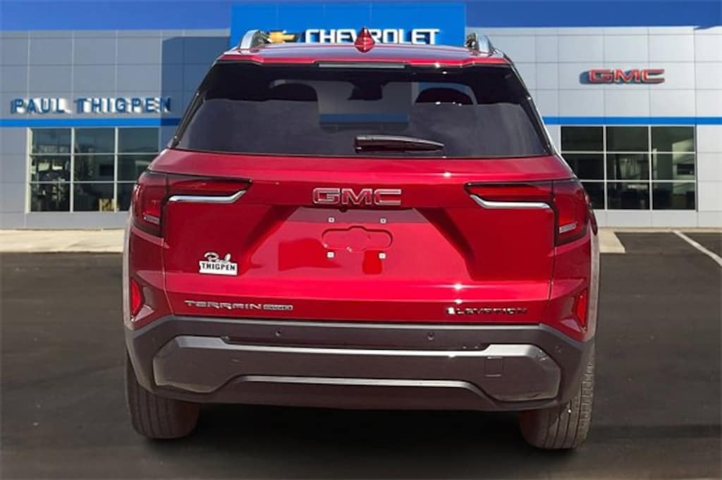 Volcanic Red Tintcoat 2026 GMC Terrain Elevation 1.5L DOHC AWD Convenience Package II (2-Way Power Driver Lumbar Seat Adjuster, 3-Channel Programmable Universal Home Remote, 8-Way Power Driver Seat Adjuster, AutoSense Hands-Free Power Programmable Liftgate, Brushed Aluminum Roof Rails, Cabin Humidity & Windshield Temperature Sensor, Dual-Zone Automatic Climate Control, Front Intermittent RainSense Wipers, Heated Wiper Park, Overhead Sunglass Storage, and Wireless Phone Charging for Portable Devices), Convenience Package III (2-Way Power Front Passenger Lumbar Seat Adjuster, 8-Way Power Passenger Seat Adjuster, Heated Rear Outboard Seats, Ventilated Driver Seat, and Ventilated Front Passenger Seat), Elevation Premium Package (CoreTec Seat Trim), License Plate Front Mounting Package, Memory Package, Preferred Equipment Group 3SB, AWD, 3.47 Final Drive Axle Ratio, 4-Wheel Disc Brakes, 6 Speakers, 6-Speaker Audio System Feature, ABS brakes, Air Conditioning, Alloy wheels, AM/FM radio: SiriusXM, Auto High-beam Headlights, Automatic temperature control, Brake assist, Bumpers: body-color, Compass, Delay-off headlights, Driver & Front Passenger Heated Seats, Driver 6-Way Manual Seat Adjuster, Driver door bin, Driver vanity mirror, Dual front impact airbags, Dual front side impact airbags, Electronic Stability Control, Emergency communication system: OnStar and GMC connected services capable, Four wheel independent suspension, Front anti-roll bar, Front Bucket Seats, Front Center Armrest, Front Passenger 4-Way Manual Seat Adjuster, Front reading lights, Fully automatic headlights, Heated door mirrors, Heated front seats, Heated steering wheel, Illuminated entry, Low tire pressure warning, Navigation System, Occupant sensing airbag, Outside temperature display, Overhead airbag, Panic alarm, Passenger door bin, Passenger vanity mirror, Power door mirrors, Power steering, Power windows, Premium Cloth Seat Trim, Radio data system, Radio: Premium GMC Infotainment System, Rear air conditioning, Rear anti-roll bar, Rear seat center armrest, Rear window defroster, Rear window wiper, Remote keyless entry, Security system, SiriusXM w/360L Trial Subscription, Speed control, Speed-sensing steering, Split folding rear seat, Spoiler, Sport steering wheel, Steering wheel mounted audio controls, Tachometer, Telescoping steering wheel, Tilt steering wheel, Traction control, Trip computer, Variably intermittent wipers, Wheels: 17 Grazen Metallic Machined Aluminum, Wheels: 19 Technical Gray Machine-Face Aluminum, and Wireless Apple CarPlay/Wireless Android Auto. AWD.