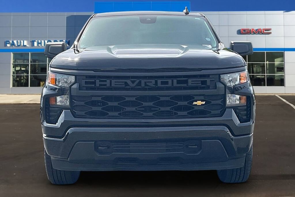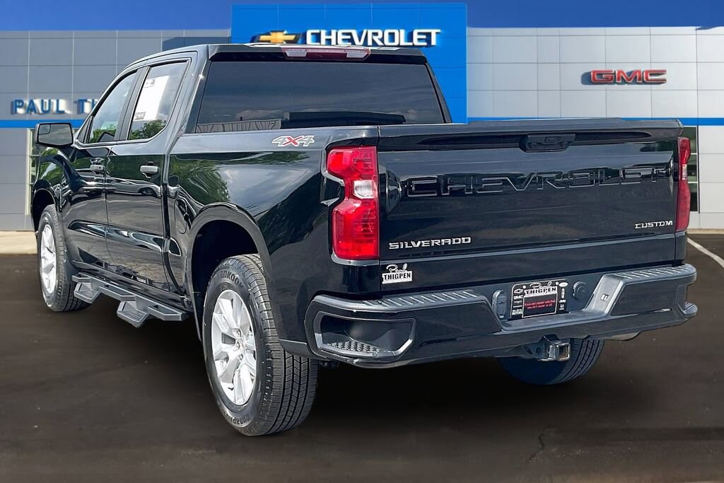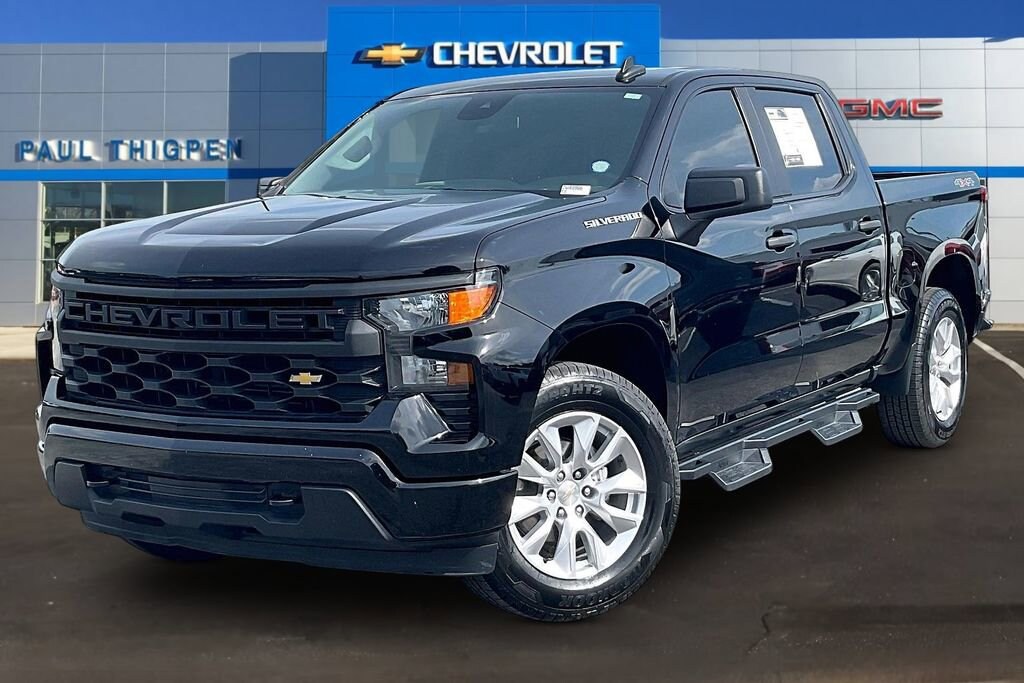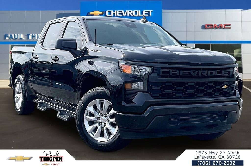Recent Arrival!CARFAX One-Owner. Clean CARFAX. Silverado 1500 Custom, 4D Crew Cab, 2.7L I4 Turbocharged DOHC 16V LEV3-SULEV30 310hp, 8-Speed Automatic, 4WD, Black, Jet Black Cloth.Custom Convenience Package (Electric Rear-Window Defogger, EZ Lift Power Lock & Release Tailgate, LED Cargo Area Lighting, Remote Vehicle Starter System, and Theft Deterrent System (Unauthorized Entry)), Custom Value Package, High Capacity Suspension Package, Preferred Equipment Group 1CX (10-Way Power Driver Seat w/Lumbar, 120-Volt Bed Mounted Power Outlet, 120-Volt Interior Power Outlet, 3.5 Monochromatic Display Driver Info Center, Bluetooth® For Phone, Chevrolet Connected Access Capable, Color-Keyed Carpeting Floor Covering, Deep-Tinted Glass, Dual Rear USB Ports (Charge Only), Electrical Steering Column Lock, Electronic Cruise Control, Front Frame-Mounted Black Recovery Hooks, Front Rubberized Vinyl Floor Mats, HD Rear Vision Camera, Manual Tilt Wheel Steering Column, OnStar & Chevrolet Connected Services Capable, Power Front Windows w/Driver Express Up/Down, Power Front Windows w/Passenger Express Down, Power Rear Windows w/Express Down, Rear 60/40 Folding Bench Seat (Folds Up), Rear Rubberized-Vinyl Floor Mats, Remote Keyless Entry, SiriusXM Radio, Standard Tailgate, and Wi-Fi Hot Spot Capable), Trailering Package (Hitch Guidance), Silverado 1500 Custom, 4D Crew Cab, 2.7L I4 Turbocharged DOHC 16V LEV3-SULEV30 310hp, 8-Speed Automatic, 4WD, Black, Jet Black Cloth, 3.42 Rear Axle Ratio, 4-Wheel Disc Brakes, 40/20/40 Front Split-Bench Seat, 6 Speakers, 6-Speaker Audio System, ABS brakes, Air Conditioning, Alloy wheels, AM/FM radio: SiriusXM, Auto High-beam Headlights, Automatic Emergency Braking, Brake assist, Bumpers: body-color, Cloth Seat Trim, Compass, Delay-off headlights, Driver door bin, Driver vanity mirror, Dual front impact airbags, Dual front side impact airbags, Electronic Stability Control, Following Distance Indicator, Forward Collision Alert, Front anti-roll bar, Front Center Armrest w/Storage, Front Pedestrian Braking, Front reading lights, Front wheel independent suspension, Fully automatic headlights, Heated door mirrors, Illuminated entry, IntelliBeam Automatic High Beam On/Off, Lane Keep Assist w/Lane Departure Warning, Low tire pressure warning, Occupant sensing airbag, Outside temperature display, Overhead airbag, Overhead console, Panic alarm, Passenger door bin, Passenger vanity mirror, Power door mirrors, Power driver seat, Power steering, Power windows, Premium audio system: Chevrolet Infotainment 3, Radio data system, Radio: Chevrolet Infotainment 3 System, Rear reading lights, Rear step bumper, Rear Wheelhouse Liners, Rear window defroster, Remote keyless entry, Security system, Single Outlet Exhaust, Speed control, Speed-sensing steering, Split folding rear seat, Tachometer, Tilt steering wheel, Traction control, Trip computer, Variably intermittent wipers, Voltmeter, and Wheels: 20 x 9 Bright Silver Painted Aluminum.* *Discounted price Includes our Paul Thigpen Chevrolet GMC La Fayette TRADE-IN ASSISTANCE discount of $2,000.00* * * *Discounted price Includes our Paul Thigpen Chevrolet GMC La Fayette FINANCE WITH US -N- SAVE discount of $1,250.00* * - All discounts & promo offers are reflected in in discounted pricing (see qualifying details below) - To qualify for Trade-In Assistance - customers must trade-in a 2010 or newer vehicle. Trade must be in working condition with current registration, taxes, inspections(safety or Gov) and misc. Fees. - To qualify for FINANCE WITH US -N- SAVE discount you must qualify for, and finance at least $10,000.00 of purchase balance through a dealer sourced Credit Union, bank, or financial institution. **Consumer must refer to this ad to receive discounted pricing**Employees and their family members are excluded from special pricing discounts**