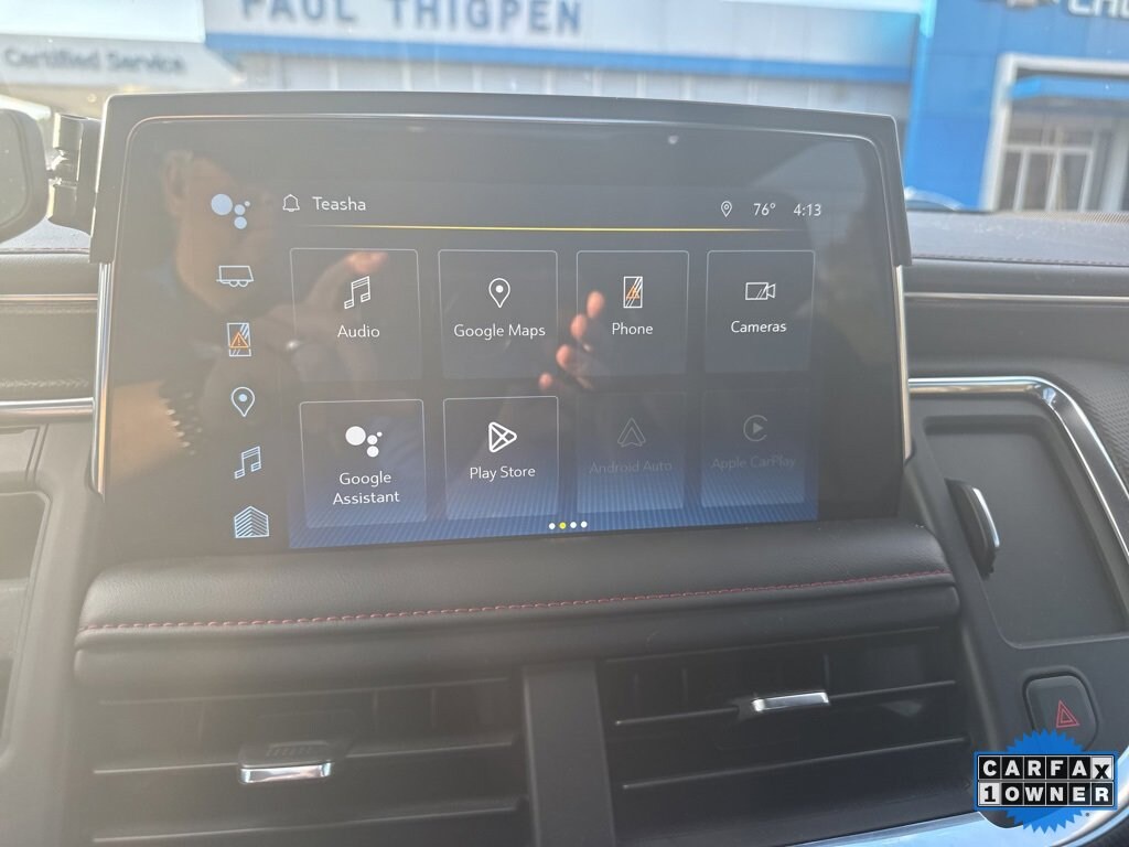 Driver Alert Package (Lane Change Alert w/Side Blind Zone Alert and Rear Cross Traffic Alert), Luxury Package (2nd Row Pwr Release 60/40 Split-Folding Bench Seat, 3rd Row 60/40 Power-Folding Split-Bench Seat, Adaptive Cruise Control, Enhanced Automatic Emergency Braking, HD Surround Vision, Heated 2nd Row Outboard Seats, Heated Steering Wheel, Memory Settings, Outside Heated Power-Adjustable Mirrors, Power Tilt & Telescopic Steering Column, and Rear Pedestrian Alert), Preferred Equipment Group 1SP (1st & 2nd Row Color-Keyed Carpeted Floor Mats, Auto-Dimming Inside Rear-View Mirror, Bose 9-Speaker Stereo Audio System Feature, Bright Front & Rear Door Sill Plates, Color-Keyed Carpeting Floor Covering, Driver & Front Outboard Passenger Airbags, Enhanced Driver Information Center, Floor Console w/Storage Area, Hands-Free Rear Power Programmable Liftgate, LED Daytime Running Lamps, Memory Settings for Driver, Remote Start, SiriusXM w/360L, Universal Home Remote, Wireless Charging, and Wrapped Steering Wheel), Jet Black/Victory Red Leather, 10-Way Power Driver & Passenger Seat Adjusters, 3.23 Rear Axle Ratio, 3rd row seats: split-bench, 4-Wheel Disc Brakes, 9 Speakers, ABS brakes, Air Conditioning, Alloy wheels, AM/FM radio: SiriusXM with 360L, Apple CarPlay/Android Auto, Auto High-beam Headlights, Auto-dimming Rear-View mirror, Automatic temperature control, Brake assist, Bumpers: body-color, Compass, Delay-off headlights, Driver door bin, Driver vanity mirror, Dual front impact airbags, Dual front side impact airbags, Dual-Pane Power Panoramic Sunroof, Electronic Stability Control, Emergency communication system: OnStar and Chevrolet connected services capable, Four wheel independent suspension, Front anti-roll bar, Front Bucket Seats, Front Center Armrest, Front dual zone A/C, Front High-Back Reclining Bucket Seats, Front reading lights, Fully automatic headlights, Garage door transmitter, Heated door mirrors, Heated Driver & Front Passenger Seats, Heated front seats, Illuminated entry, Infotainment Display, Low tire pressure warning, Memory seat, Navigation System, Occupant sensing airbag, Outside temperature display, Overhead airbag, Overhead console, Panic alarm, Passenger door bin, Passenger vanity mirror, Perforated Leather Seat Trim, Power door mirrors, Power driver seat, Power Liftgate, Power passenger seat, Power Release 2nd Row Bucket Seats, Power steering, Power windows, Premium audio system: Chevrolet Infotainment 3 Premium, Premium Smooth Ride Suspension, Radio: Chevrolet Infotainment 3 Premium System, Rain sensing wipers, Rear air conditioning, Rear anti-roll bar, Rear reading lights, Rear seat center armrest, Rear window defroster, Rear window wiper, Remote keyless entry, Roof rack: xxxxxx, Security system, Set of 4 Wheel Locks (LPO), Speed control, Speed-sensing steering, Split folding rear seat, Spoiler, Steering wheel mounted audio controls, Tachometer, Telescoping steering wheel, Tilt steering wheel, Traction control, Trip computer, Variably intermittent wipers, Voltmeter, and Wheels: 22 x 9 Bright Machined.