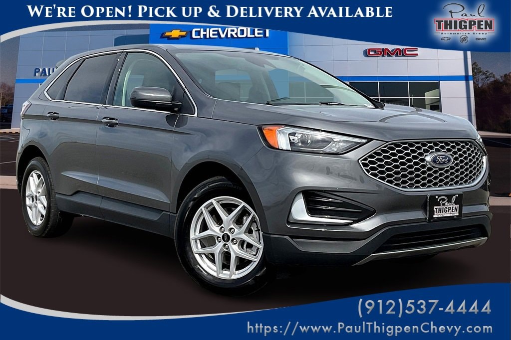 Paul Thigpen Chevrolet GMC 100 Semco Drive Vidalia, Georgia 30474 (844) 283-5935 www.paulthigpenchevy.com Paul Thigpen Chevrolet GMC has serviced and detailed this 2023 Ford Edge and comes with the following Equipment Group 201A, 4D Sport Utility, EcoBoost 2.0L I4 GTDi DOHC Turbocharged VCT, 8-Speed Automatic, AWD, 4-Wheel Disc Brakes, 6 Speakers, ABS brakes, ActiveX Seating Material Heated Bucket Seats, AM/FM radio: SiriusXM with 360L, Auto High-beam Headlights, Auto-dimming Rear-View mirror, Automatic temperature control, Brake assist, Compass, Delay-off headlights, Electronic Stability Control, Emergency communication system: SYNC 4 911 Assist, FordPass Connect, Four wheel independent suspension, Front Center Armrest w/Storage, Front dual zone A/C, Fully automatic headlights, Heated door mirrors, Heated front seats, Illuminated entry, Leather steering wheel, Leather-Wrapped Steering Wheel, Low tire pressure warning, Outside temperature display, Overhead console, Panic alarm, Power door mirrors, Power driver seat, Power passenger seat, Power steering, Power windows, Radio: AM/FM Stereo/MP3 Capable, Rear Parking Sensors, Rear seat center armrest, Rear window wiper, Remote keyless entry, SiriusXM w/360L, Speed control, Speed-Sensitive Wipers, Spoiler, Steering wheel mounted audio controls, SYNC 4A w/Enhanced Voice Recognition, Telescoping steering wheel, Tilt steering wheel, Traction control, Trip computer, Wheels: 18 Sparkle Silver-Painted Aluminum, 3.80 Axle Ratio, Air Conditioning, Alloy wheels, Bumpers: body-color, Driver door bin, Driver vanity mirror, Dual front impact airbags, Dual front side impact airbags, Front anti-roll bar, Front Bucket Seats, Front reading lights, Knee airbag, Occupant sensing airbag, Overhead airbag, Passenger door bin, Passenger vanity mirror, Rear anti-roll bar, Rear reading lights, Rear window defroster, Split folding rear seat, Tachometer, and Variably intermittent wiperS.