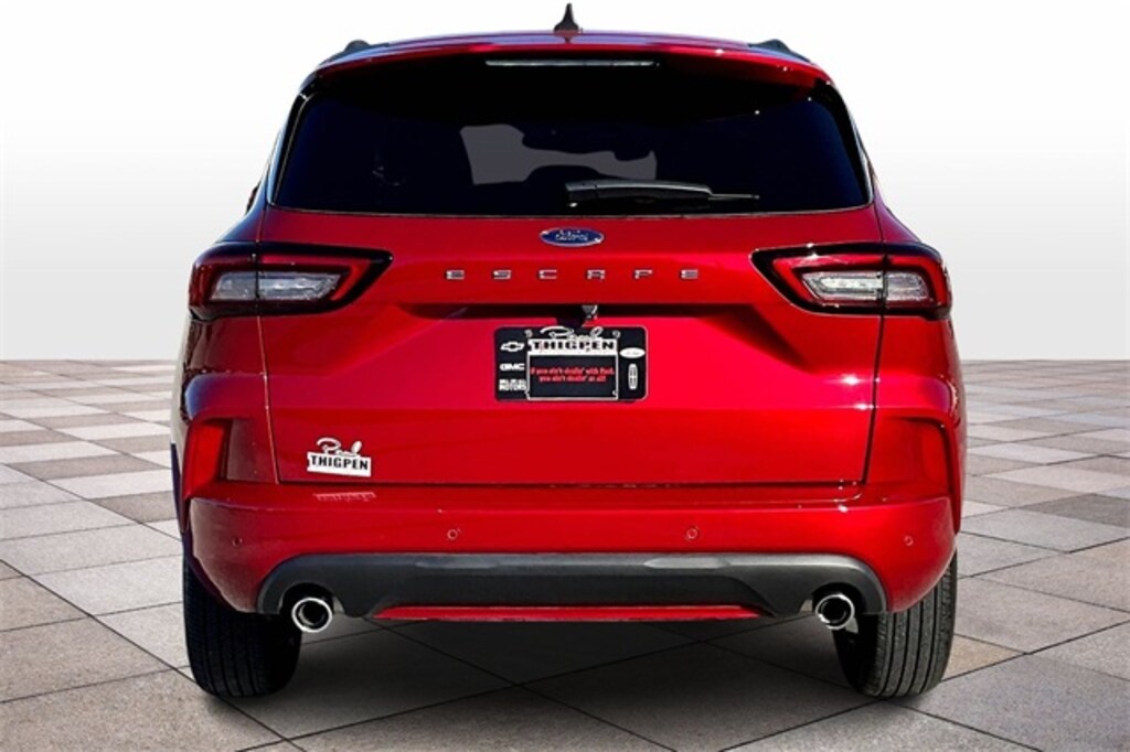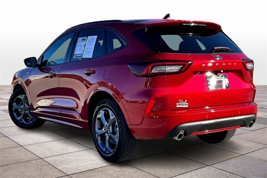 Rapid Red Metallic Tinted Clearcoat 2023 Ford Escape ST-Line FWD 1.5L EcoBoost 13.4" HD Color Touchscreen, Adaptive Cruise Control, Auto LED Headlights, Backup Camera, Blind Spot Monitoring, BLIS Blind Spot Info, Bluetooth w/ Streaming Audio, Evasive Steering Assist, Lane Keeping System, Parking Sensors, Power Mirror Package, Power Package, Push Button Start, Reverse Brake Assist, Reverse Sensing, Skid Plate Package, 4D Sport Utility, 1.5L EcoBoost, 8-Speed Automatic, FWD, 4-Wheel Disc Brakes, ABS brakes, AM/FM radio: SiriusXM, AM/FM Stereo, Auto High-beam Headlights, Automatic temperature control, Brake assist, Compass, Connected Built-In Navigation, Delay-off headlights, Electronic Stability Control, Emergency communication system: SYNC 4 911 Assist, Equipment Group 300A, Exterior Parking Camera Rear, Ford Co-Pilot360 Assist+, FordPass Connect, Four wheel independent suspension, Front Center Armrest, Front dual zone A/C, Front License Plate Bracket, Fully automatic headlights, Illuminated entry, Intelligent Adaptive Cruise Control w/Stop-and-Go, Low tire pressure warning, Neutral Towing Capability, Outside temperature display, Overhead console, Panic alarm, Pedestrian Alert Sounder, Power door mirrors, Power driver seat, Power Liftgate, Power steering, Power windows, Radio data system, Rear Parking Sensor, Rear seat center armrest, Rear window wiper, Rear-View Camera, Remote keyless entry, Speed Sign Recognition, Speed-sensing steering, Speed-Sensitive Wipers, Split folding rear seat, Spoiler, Sport steering wheel, Steering wheel mounted audio controls, SYNC 4, SYNC 4 w/Enhanced Voice Recognition, Tech Pack #1, Telescoping steering wheel, Tilt steering wheel, Traction control, Trip computer, Vinyl/Cloth Front Sport Contour Bucket Seats.