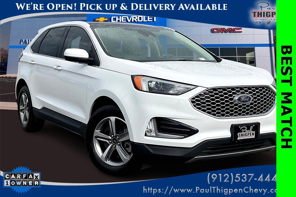 Oxford White 2024 Ford Edge SEL AWD 8-Speed Automatic EcoBoost 2.0L I4 GTDi DOHC Turbocharged VCT **LOCAL TRADE**, 12 LCD Color Touchscreen, 4G WiFi Hotspot Telematics, Auto LED Headlights, Backup Camera, Comfort Package, Panoramic Sunroof/Moonroof, Power Mirror Package, Power Package, Preferred Equipment Package, Remote Start, Wireless Charging, 4D Sport Utility, EcoBoost 2.0L I4 GTDi DOHC Turbocharged VCT, 8-Speed Automatic, AWD, 110V/150W AC Power Outlet, 4-Wheel Disc Brakes, ABS brakes, ActiveX Trimmed Heated Bucket Seats, AM/FM radio: SiriusXM with 360L, AM/FM Stereo, Auto High-beam Headlights, Auto-dimming Rear-View mirror, Automatic temperature control, Brake assist, Compass, Convenience Package, Delay-off headlights, Electronic Stability Control, Emergency communication system: SYNC 4 911 Assist, Equipment Group 201A, Fog Lamps w/Iconic Silver Bezel, FordPass Connect, Four wheel independent suspension, Front Center Armrest w/Storage, Front dual zone A/C, Fully automatic headlights, Heated door mirrors, Heated front seats, Heated Steering Wheel, Illuminated entry, Leather steering wheel, Low tire pressure warning, Outside temperature display, Overhead console, Panic alarm, Perimeter Alarm, Power door mirrors, Power driver seat, Power Liftgate, Power passenger seat, Power steering, Power windows, Rear Parking Sensors, Rear seat center armrest, Rear window defroster, Rear window wiper, Remote keyless entry, Remote Start System, SiriusXM w/360L, Speed control, Speed-Sensitive Wipers, Split folding rear seat, Spoiler, Steering wheel mounted audio controls, SYNC 4A w/Enhanced Voice Recognition, Telescoping steering wheel, Tilt steering wheel, Traction control, Trip computer, Universal Garage Door Opener (UGDO), Wireless Charging Pad.