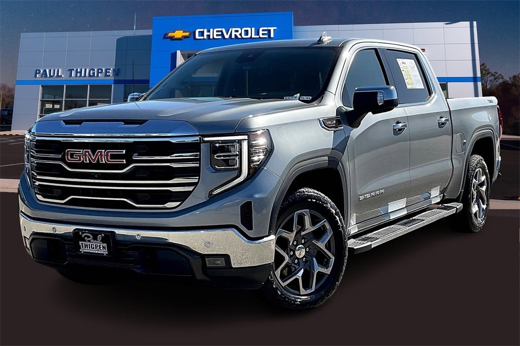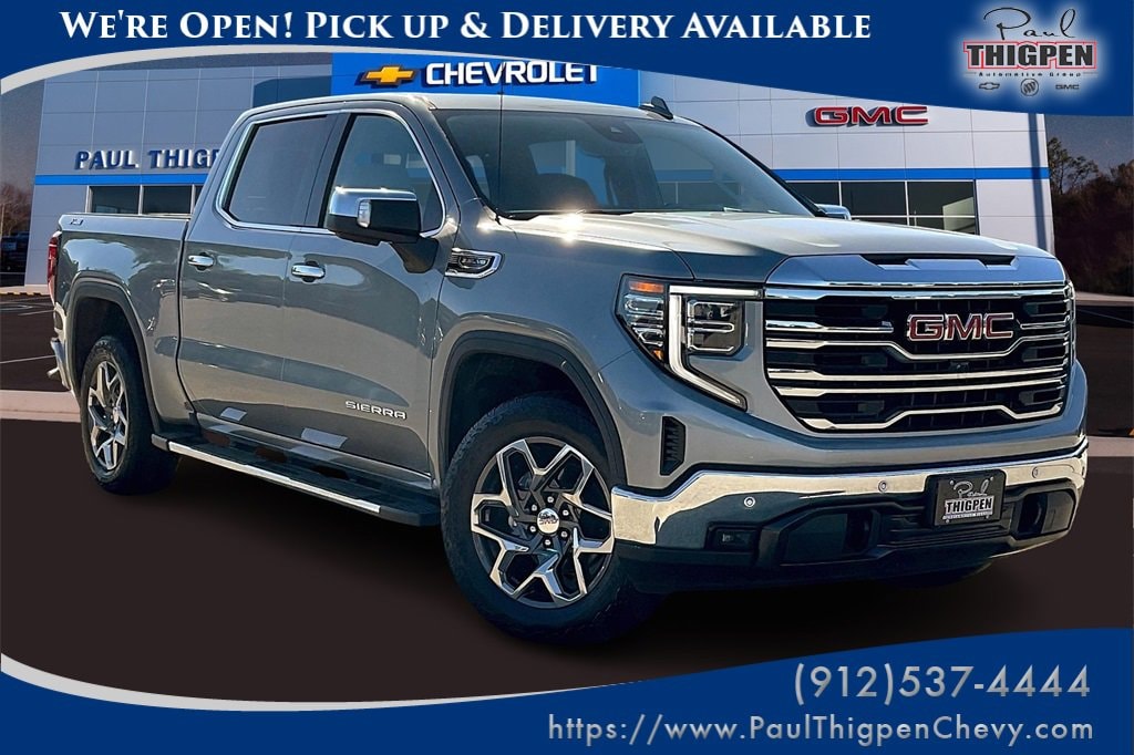 Paul Thigpen Chevrolet GMC 100 Semco Drive Vidalia, Georgia 30474 (844) 283-5935 www.paulthigpenchevy.com Paul Thigpen Chevrolet GMC has serviced and detailed this 2023 GMC Sierra 1500 and comes with the following High Capacity Suspension Package, Preferred Equipment Group 4SA (120-Volt Bed Mounted Power Outlet, 120-Volt Instrument Panel Power Outlet, 170 Amp Alternator, 2 Charge/Data USB Ports, 2 Type-C Charge-Only Rear USB Ports, 6-Speaker Audio System Feature, Auto-Locking Rear Differential, Auxiliary External Transmission Oil Cooler, Chrome Header & Chrome Grille Insert Bars, Color-Keyed Carpeting Floor Covering, Compass, Deep-Tinted Glass, Electric Rear-Window Defogger, Electrical Steering Column Lock, Front Frame-Mounted Black Recovery Hooks, Front Rainsensing Wipers, GMC Connected Access Capable, HD Rear Vision Camera, Keyless Open & Start, LED Cargo Area Lighting, Manual Tilt-Wheel & Telescoping Steering Column, OnStar & GMC Connected Services Capable, Perimeter Lighting, Power Door Locks, Power Front Passenger Windows w/Express Up/Down, Power Front Windows w/Driver Express Up/Down, Power Rear Windows w/Express Down, Push Button Start, Rear Wheelhouse Liners, Remote Vehicle Starter System, SiriusXM w/360L, Steering Wheel Audio Controls, Theft Deterrent System (Unauthorized Entry), Wi-Fi Hotspot Capable, and Wireless Phone Projection), ProGrade Trailering System (Hitch Guidance w/Hitch View, In-Vehicle Trailering App, and Integrated Trailer Brake Controller), Sierra Safety Plus Package (HD Surround Vision, Rear Cross Traffic Braking, Rear Pedestrian Detection, Safety Alert Seat, Trailer Camera Provisions, Trailer Side Blind Zone Alert, and Ultrasonic Front & Rear Park Assist), SLT Convenience Package (2 Charge/Data USB Ports Inside Center Console, Electronic Precision Shift, Floor-Mounted Center Console, Front Bucket Seats, Power Rake & Telescoping Steering Column, Premium Bose 7-Speaker Sound System, Ventilated Driver & Front Passenger Seats, and Wireless Charging), SLT Preferred Package (Adaptive Cruise Control, Heated 2nd Row Outboard Seats, Power Sliding Rear Window w/Rear Defogger, and Universal Home Remote), SLT Premium Plus Package (20 Polished Aluminum Wheels, Chrome Wheel To Wheel Assist Steps, and Spray-On Pickup Bed Liner w/GMC Logo), Standard Suspension Package, Trailering Package (Hitch Guidance), X31 Off-Road & Protection Package (All-Weather Floor Liner (LPO) and Wheels: 20 Polished Aluminum w/RFX), X31 Off-Road Package (Dual Exhaust System, Heavy-Duty Air Filter, Hill Descent Control, Off-Road Suspension, and X31 Hard Badge), 4D Crew Cab, EcoTec3 6.2L V8, 10-Speed Automatic, 4WD, 10-Way Power Driver Seat Adjuster w/Lumbar, 10-Way Power Passenger Seat Adjuster w/Lumbar, 4-Wheel Disc Brakes, ABS brakes, Apple CarPlay/Android Auto, Auto High-beam Headlights, Auto-dimming Rear-View mirror, Automatic Emergency Braking, Automatic temperature control, Brake assist, Delay-off headlights, Driver Memory, Electronic Stability Control, Emergency communication system: OnStar and GMC connected services capable, Forward Collision Alert, Front 40/20/40 Split-Bench Seat, Front Center Armrest w/Storage, Front dual zone A/C, Front fog lights, Front Pedestrian Braking, Front wheel independent suspension, Fully automatic headlights, Heated door mirrors, Heated Driver & Front Outboard Passenger Seating, Heated front seats, Heated steering wheel, Illuminated entry, IntelliBeam Automatic High Beam On/Off, Lane Keep Assist w/Lane Departure Warning, Low tire pressure warning, Memory seat, Navigation System, Outside temperature display, Overhead console, Panic alarm, Perf Leather-Appointed Front Outboard Seat Trim, Power door mirrors, Power passenger seat, Premium audio system: GMC Infotainment System, Radio data system, Radio: Premium GMC Infotainment Audio System, Rain sensing wipers, Rear seat center armrest, Rear step bumper, Security system, Speed-sensing steering, Split folding rear seat, Telescoping steering wheel, Tilt s