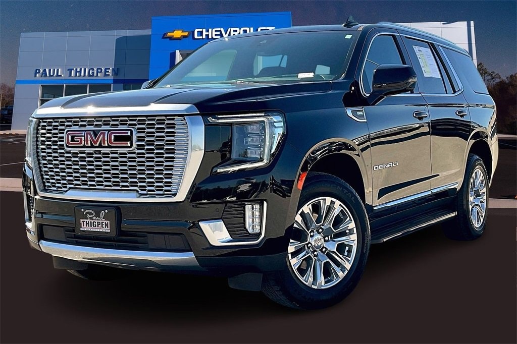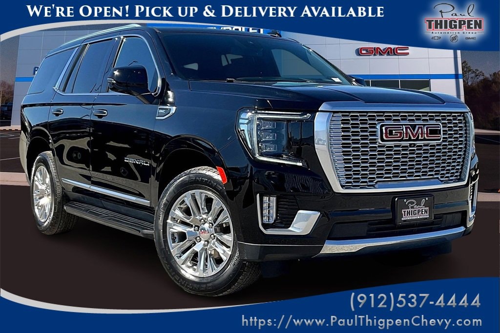 Paul Thigpen Chevrolet GMC 100 Semco Drive Vidalia, Georgia 30474 (844) 283-5935 www.paulthigpenchevy.com Paul Thigpen Chevrolet GMC has serviced and detailed this 2023 GMC Yukon and comes with the following Preferred Equipment Group 5SA (15 Diagonal Multi-Color Head-Up Display, 2 Presets For Outside Rearview Mirrors, 3 Years of GMC Connected Services, 3 Years of OnStar Safety & Security, 3rd Row 60/40 Power-Folding Split-Bench Seat, Bose 14-Speaker Surround w/CenterPoint, Bright Front & Rear Door Sill Plates, Chrome Door Handles w/Body-Color Strip, Dual Exhaust System, Enhanced Automatic Emergency Braking, Floor Console, Galvano Bodyside Moldings, Hands-Free Power Programmable Rear Liftgate, HD Surround Vision, Heated & Ventilated Driver & Front Passenger Seats, Heated 2nd Row Outboard Position Seats, Heated Driver & Front Passenger Seats, Heated Steering Wheel, Inside Rear-View Auto-Dimming Mirror, Outside Heated Power-Adjustable Mirrors, Power Release 2nd Row Bucket Seats, Power Tilt & Telescopic Steering Column, Rear Pedestrian Alert, Safety Alert Seat, Universal Home Remote, and Wireless Charging), License Plate Front Mounting Package, 4D Sport Utility, EcoTec3 6.2L V8, 10-Speed Automatic with Overdrive, RWD, 14 Speakers, 4-Wheel Disc Brakes, ABS brakes, Adaptive Cruise Control, Adaptive suspension, AM/FM radio: SiriusXM with 360L, Apple CarPlay/Android Auto, Auto High-beam Headlights, Auto-dimming door mirrors, Auto-dimming Rear-View mirror, Automatic Emergency Braking, Automatic temperature control, Brake assist, Compass, Delay-off headlights, Electronic Stability Control, Emergency communication system: OnStar and GMC connected services capable, Following Distance Indicator, Forward Collision Alert, Four wheel independent suspension, Front & Rear Park Assist, Front Center Armrest, Front dual zone A/C, Front fog lights, Front Pedestrian Braking, Fully automatic headlights, Garage door transmitter, Heads-Up Display, Heated door mirrors, Heated front seats, Illuminated entry, IntelliBeam Automatic High Beam On/Off, Lane Change Alert w/Side Blind Zone Alert, Lane Keep Assist w/Lane Departure Warning, Low tire pressure warning, Magnetic Ride Control Suspension, Memory seat, Navigation System, Outside temperature display, Overhead console, Panic alarm, Perforated Leather Seating Surfaces, Power door mirrors, Power Liftgate, Power passenger seat, Rain sensing wipers, Rear air conditioning, Rear Cross Traffic Alert, Rear window wiper, Remote keyless entry, Security system, SiriusXM w/360L, Speed-sensing steering, Split folding rear seat, Spoiler, Steering wheel memory, Steering wheel mounted audio controls, Telescoping steering wheel, Tilt steering wheel, Traction control, Trip computer, Turn signal indicator mirrors, Ventilated front seats, Wheels: 20 x 9 6-Spoke Polished Aluminum, 3 Years of OnStar Safety & Security (DISC), 3.23 Rear Axle Ratio, 3rd row seats: split-bench, Air Conditioning, Alloy wheels, AM/FM Stereo, Auto-leveling suspension, Bodyside moldings, Bumpers: body-color, Deleted 3 Years of OnStar Safety & Security, Driver door bin, Driver vanity mirror, Dual front impact airbags, Dual front side impact airbags, Front anti-roll bar, Front Bucket Seats, Front reading lights, Heated rear seats, Heated steering wheel, Not Equipped w/4-Way Driver & Fr Pass Pwr Lumbar, Occupant sensing airbag, Overhead airbag, Passenger door bin, Passenger vanity mirror, Power driver seat, Power steering, Power windows, Rear anti-roll bar, Rear reading lights, Rear window defroster, Roof rack: rails only, Speed control, Tachometer, Variably intermittent wipers, and VoltmeteR.