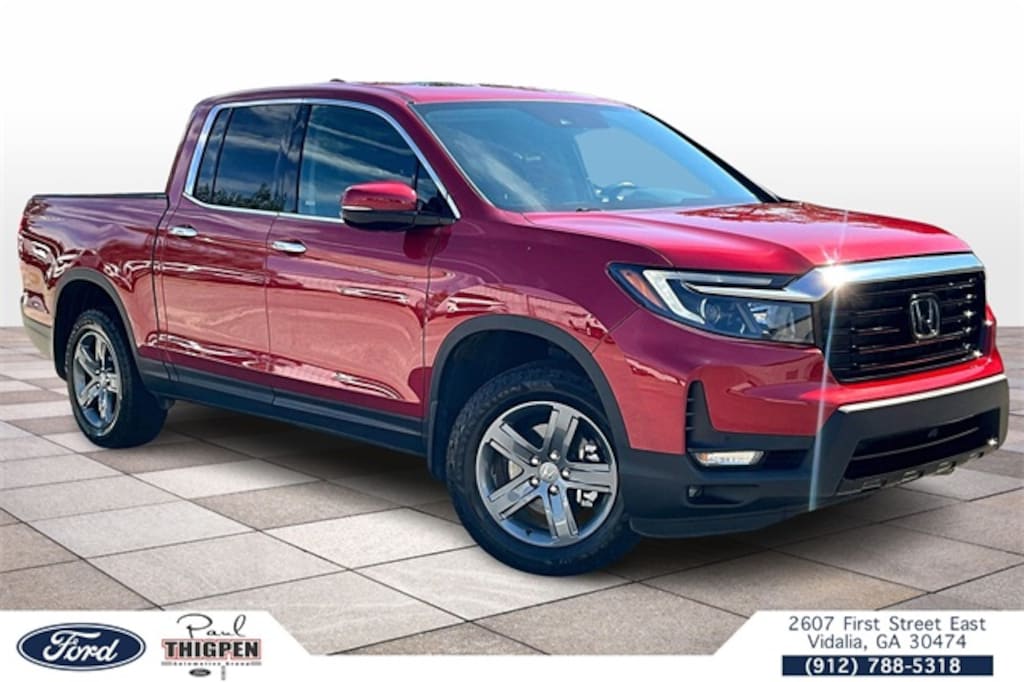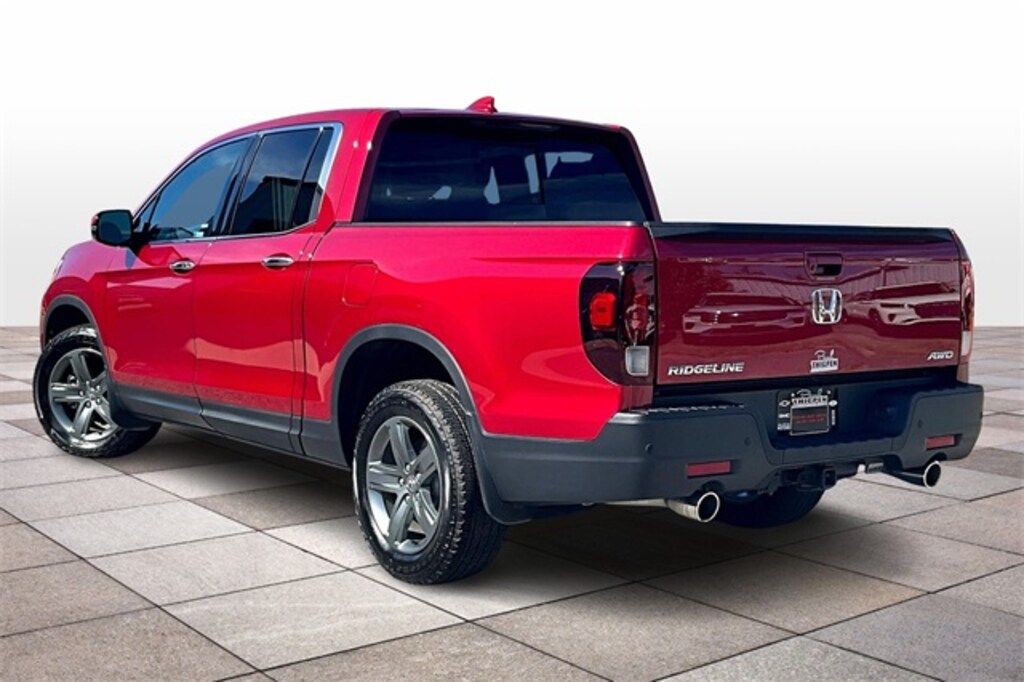 Radiant Red Metallic II 2023 Honda Ridgeline RTL-E AWD 3.5L V6 SOHC i-VTEC 24V Aluminum Wheels, Black w/Leather Seat Trim.