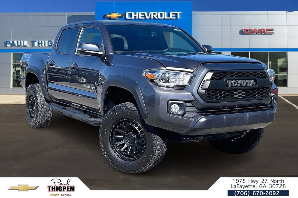 Tacoma TRD Offroad V6, 4D Double Cab, 3.5L V6 PDI DOHC 24V LEV3-ULEV70 278hp, 6-Speed Automatic, 4WD, Magnetic Gray Metallic, Black/Gun Metal Cloth, 6 Speakers, ABS brakes, Air Conditioning, AM/FM radio: SiriusXM, Anti-whiplash front head restraints, Apple CarPlay/Android Auto, Auto High-beam Headlights, Automatic temperature control, Axle Ratio: 3.91, Brake assist, Bumpers: body-color, Driver door bin, Dual front impact airbags, Dual front side impact airbags, Electronic Stability Control, Emergency communication system: Safety Connect with 1-year trial, Exterior Parking Camera Rear, Front anti-roll bar, Front Bucket Seats, Front Center Armrest, Front dual zone A/C, Front reading lights, Front Seats, Front wheel independent suspension, Illuminated entry, Knee airbag, Low tire pressure warning, Occupant sensing airbag, Outside temperature display, Overhead airbag, Overhead console, Passenger door bin, Power door mirrors, Power steering, Power windows, Rear step bumper, Speed control, Speed-sensing steering, Split folding rear seat, Steering wheel mounted audio controls, Tachometer, Telescoping steering wheel, Tilt steering wheel, Traction control, and Variably intermittent wipers.