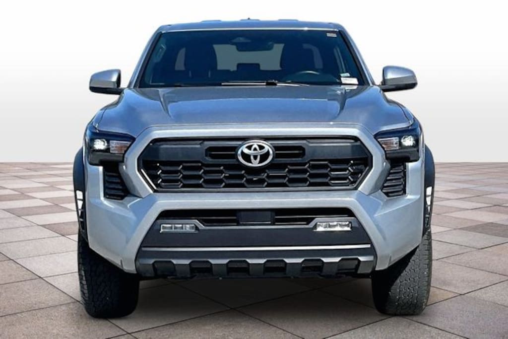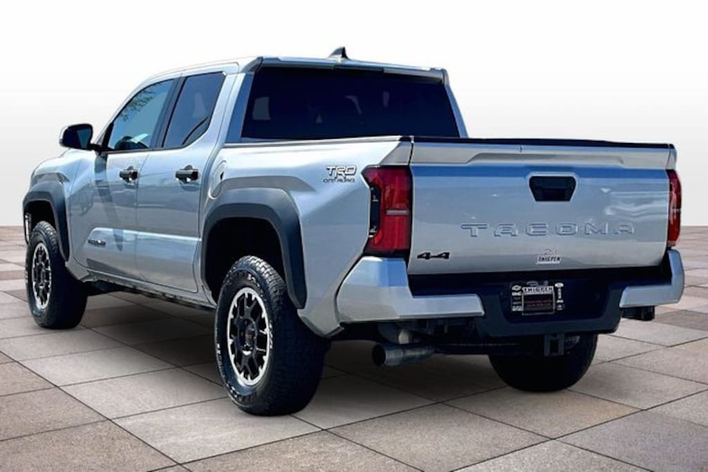 Vidalia Ford Lincoln 2607 E 1st St Vidalia, Georgia 30474 912-788-5318 TRD Off Road Package, Ford Blue Advantage: Blue Certified Certified, 4WD, 3.583 Axle Ratio, 4-Wheel Disc Brakes, 6 Speakers, ABS brakes, Air Conditioning, Alloy wheels, AM/FM radio: SiriusXM, Anti-whiplash front head restraints, Apple CarPlay/Android Auto, Auto High-beam Headlights, Auto-dimming Rear-View mirror, Automatic temperature control, Brake assist, Bumpers: body-color, Driver door bin, Driver vanity mirror, Dual front impact airbags, Dual front side impact airbags, Electronic Stability Control, Emergency communication system: Safety Connect (1-year trial), Exterior Parking Camera Rear, Fabric Seat Trim (FD), Four wheel independent suspension, Front anti-roll bar, Front Bucket Seats, Front Center Armrest, Front fog lights, Front reading lights, Fully automatic headlights, Heated door mirrors, Illuminated entry, Knee airbag, Leather Shift Knob, Leather steering wheel, Low tire pressure warning, Occupant sensing airbag, Outside temperature display, Overhead airbag, Overhead console, Panic alarm, Passenger door bin, Passenger vanity mirror, Power door mirrors, Power steering, Power windows, Radio: 8" Toyota Audio Multimedia, Rear step bumper, Rear window defroster, Remote keyless entry, Security system, Speed control, Speed-sensing steering, Split folding rear seat, Steering wheel mounted audio controls, Tachometer, Telescoping steering wheel, Tilt steering wheel, Traction control, Trip computer, Turn signal indicator mirrors, Variably intermittent wipers, and Wheels: 17" TRD Off-Road Alloy. Celestial Silver Metallic 2024 Toyota Tacoma TRD Off-Road 4WD 2.4L 4-Cylinder 4WD, 3.583 Axle Ratio, 4-Wheel Disc Brakes, 6 Speakers, ABS brakes, Air Conditioning, Alloy wheels, AM/FM radio: SiriusXM, Anti-whiplash front head restraints, Apple CarPlay/Android Auto, Auto High-beam Headlights, Auto-dimming Rear-View mirror, Automatic temperature control, Brake assist, Bumpers: body-color, Driver door bin, Driver vanity mirror, Dual front impact airbags, Dual front side impact airbags, Electronic Stability Control, Emergency communication system: Safety Connect (1-year trial), Exterior Parking Camera Rear, Fabric Seat Trim (FD), Four wheel independent suspension, Front anti-roll bar, Front Bucket Seats, Front Center Armrest, Front fog lights, Front reading lights, Fully automatic headlights, Heated door mirrors, Illuminated entry, Knee airbag, Leather Shift Knob, Leather steering wheel, Low tire pressure warning, Occupant sensing airbag, Outside temperature display, Overhead airbag, Overhead console, Panic alarm, Passenger door bin, Passenger vanity mirror, Power door mirrors, Power steering, Power windows, Radio: 8" Toyota Audio Multimedia, Rear step bumper, Rear window defroster, Remote keyless entry, Security system, Speed control, Speed-sensing steering, Split folding rear seat, Steering wheel mounted audio controls, Tachometer, Telescoping steering wheel, Tilt steering wheel, Traction control, TRD Off Road Package, Trip computer, Turn signal indicator mirrors, Variably intermittent wipers, Wheels: 17" TRD Off-Road Alloy.